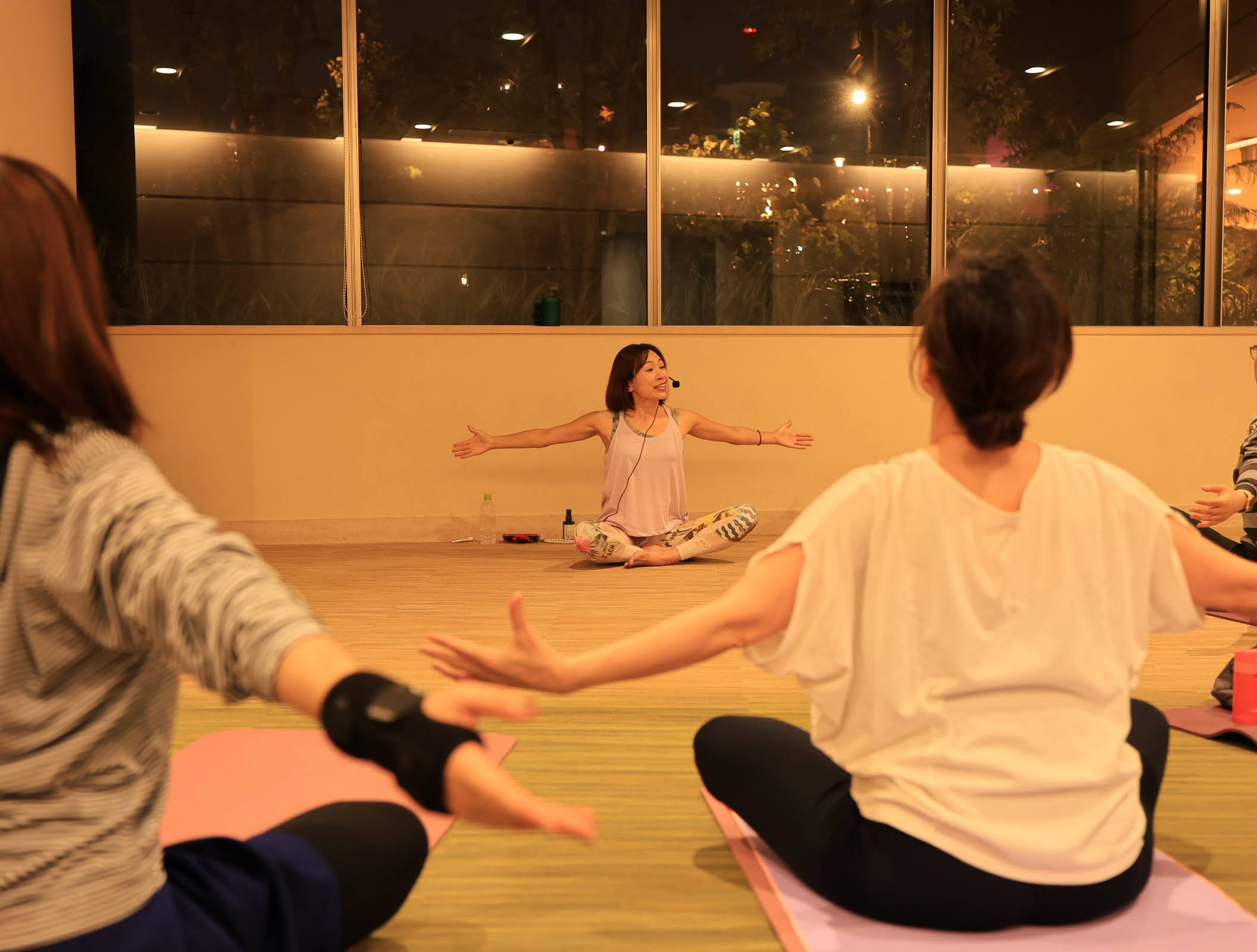 中秋の名月を間近に控えた10月の週末、なんばパークスガーデンでは「お月見・ナイトヨガ」が開催されました。本来は、8階の屋外ガーデンで月を眺めながらのヨガを予定していましたが、当日はあいにくの雨。足元の状況も考慮し、会場は7階のスカイロビーへと変更されました。
