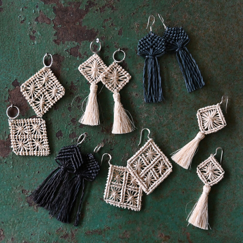 植物と手仕事が重なり、 爽やかなアクセサリーが誕生しました。 マニラ麻とも呼ばれるバナナの葉に似た 「アバカ」という植物を細い繊維にし、 一つ一つ手...