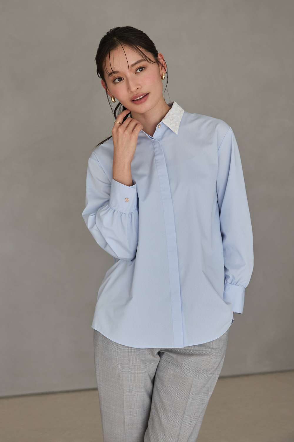 【CLASSY.オンライン掲載】衿刺繍シャツ