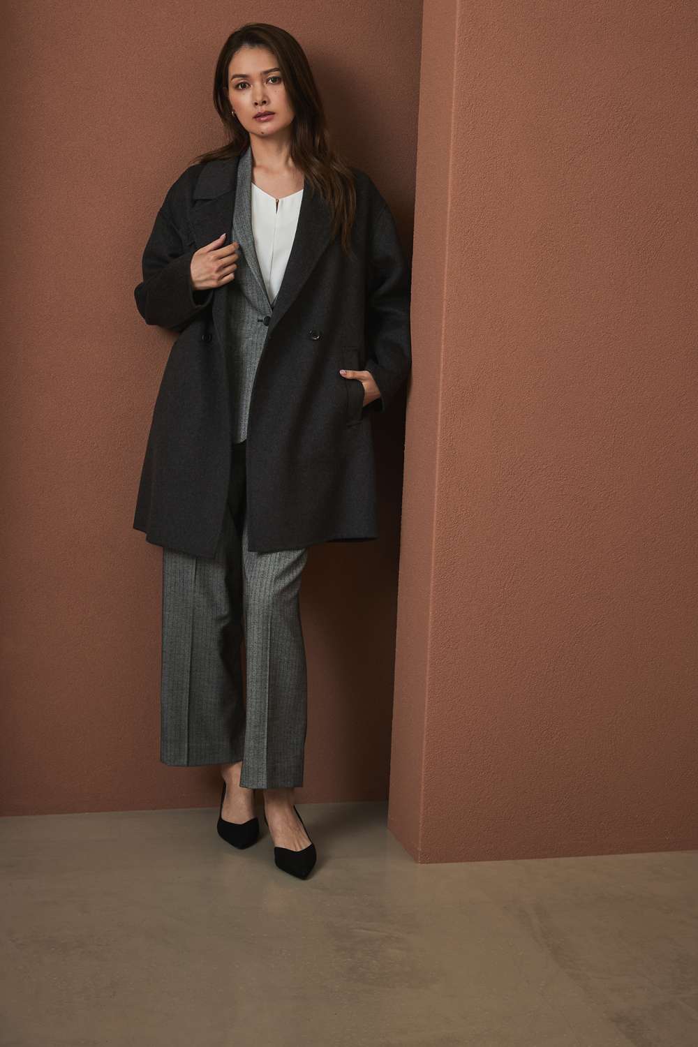 パンツに差し色を🟠冬コーデ