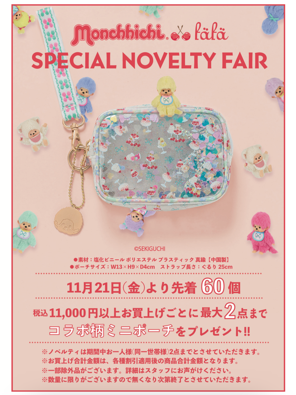 みなさまこんにちは☆ 本日は、とっておきのスペシャルニュース! 大好評♪ モンチッチxフェフェのコラボ柄のクリアミニポーチがもらえる、スペシャルノベ...