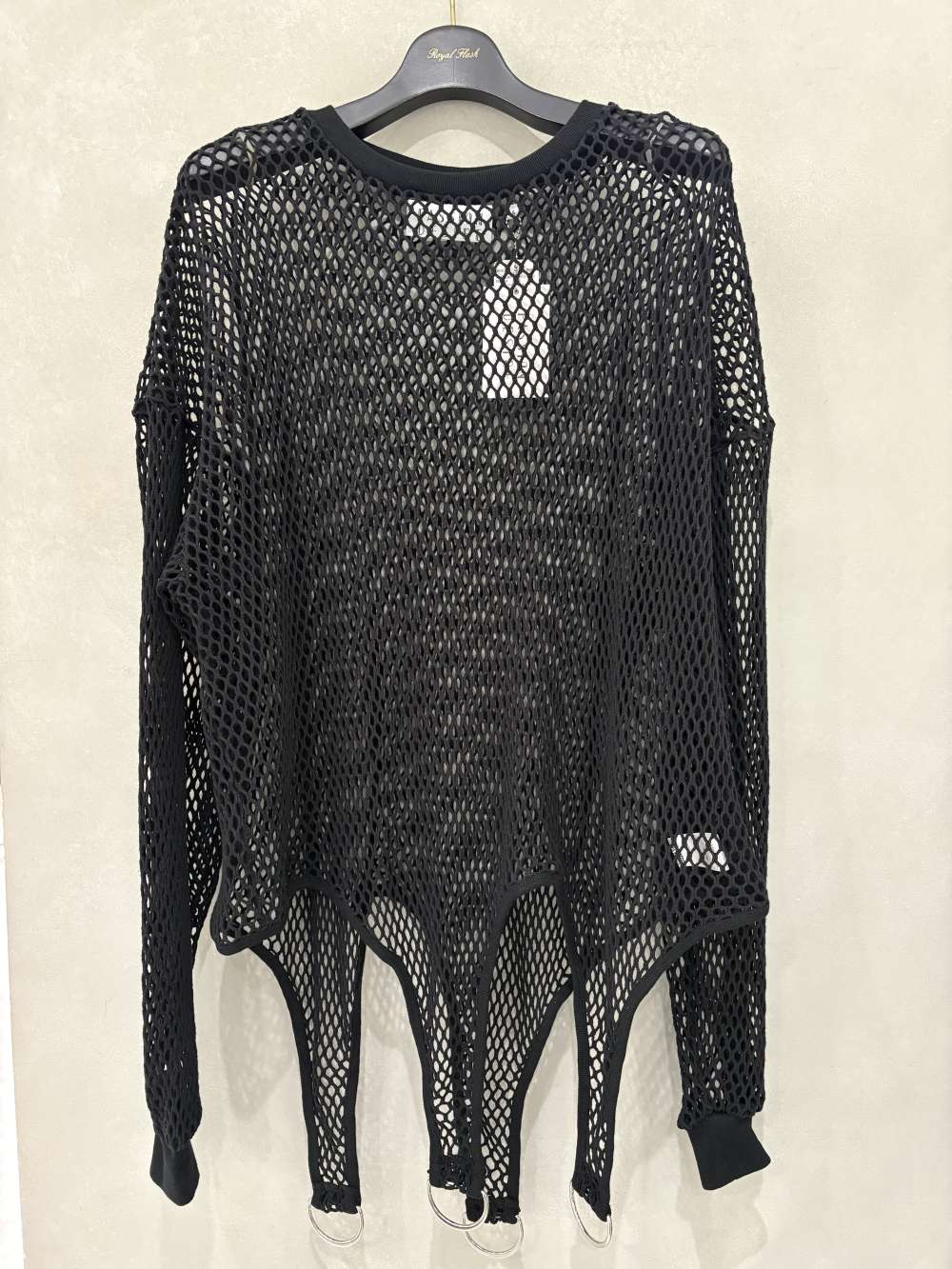 メッシュ素材のテイルロングスリーブ。 裾には、金属製のリングパーツが付いており、動きに合わせて躍動感をコーディネートに与えてくれます。 独特な世界観を...