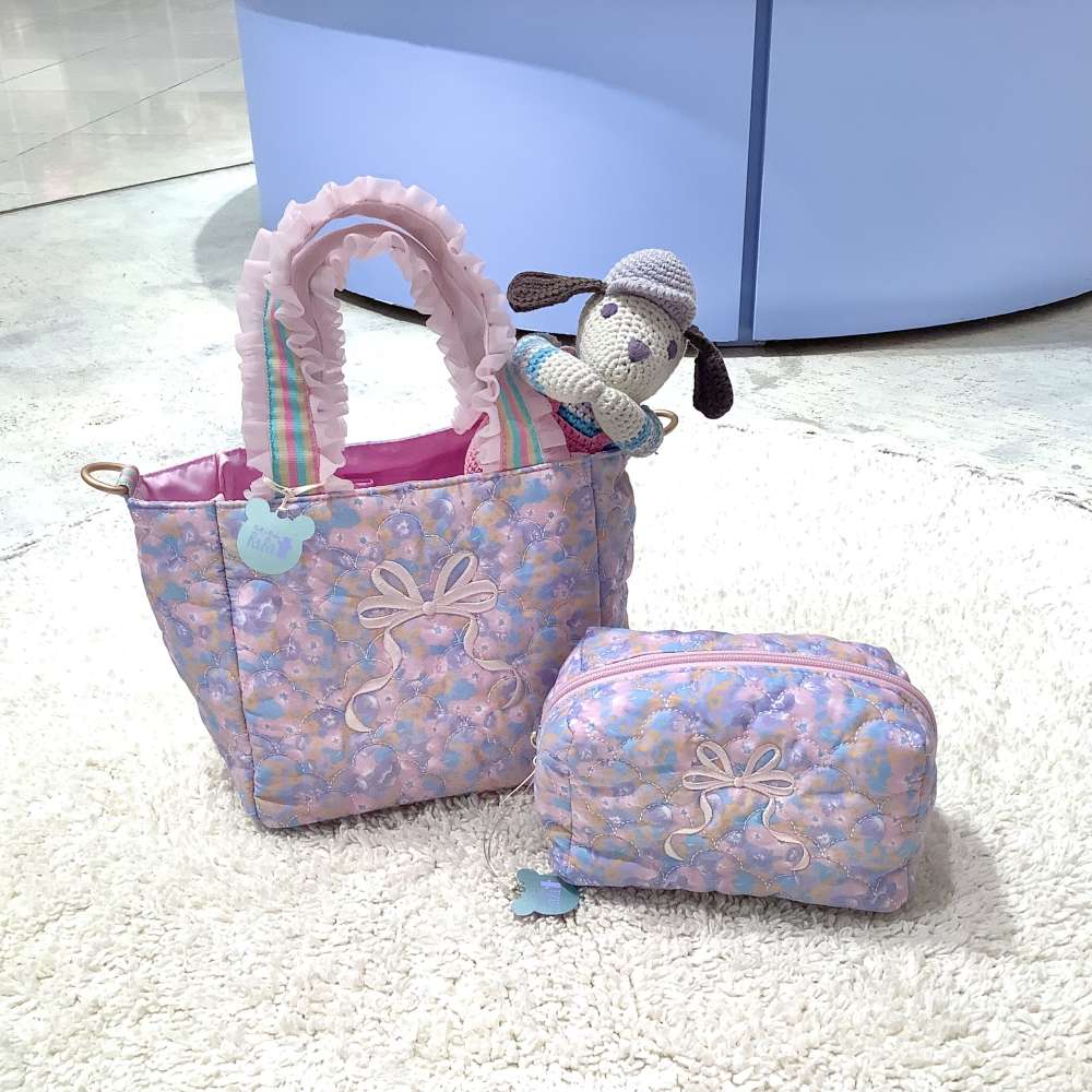 キルティングのバッグ、ポーチの新作が入荷しております🥰こちらはランドセルの内装にもなっている人気のお花柄に初登場のリボンアップリケが目を引くシリーズ🎀...