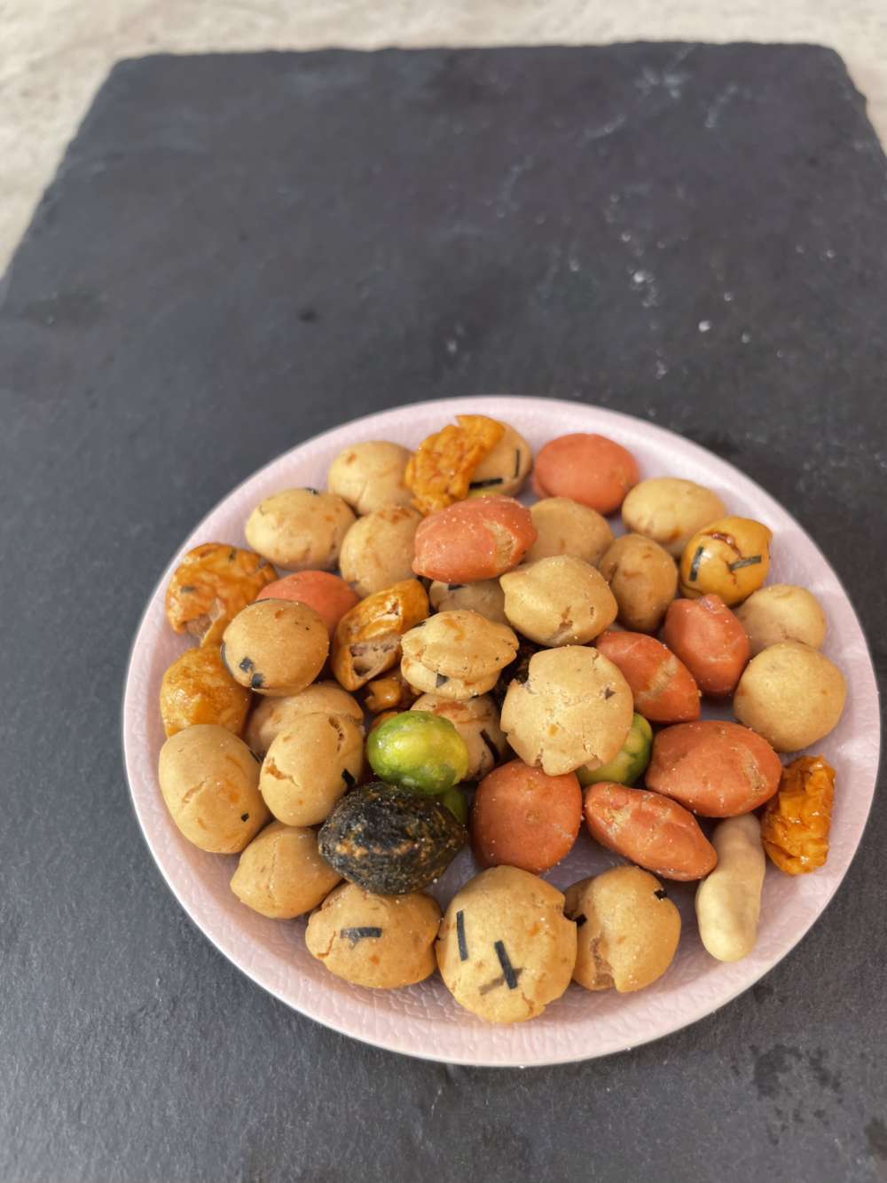 🌟ギフトに人気の、ネーミングも可愛らしいナッツダムの『つぼみ』✨ 小粒ながらもふっくらした落花生を寒梅粉でくるみ、海老・いか・わさび・海苔・醤油で味...
