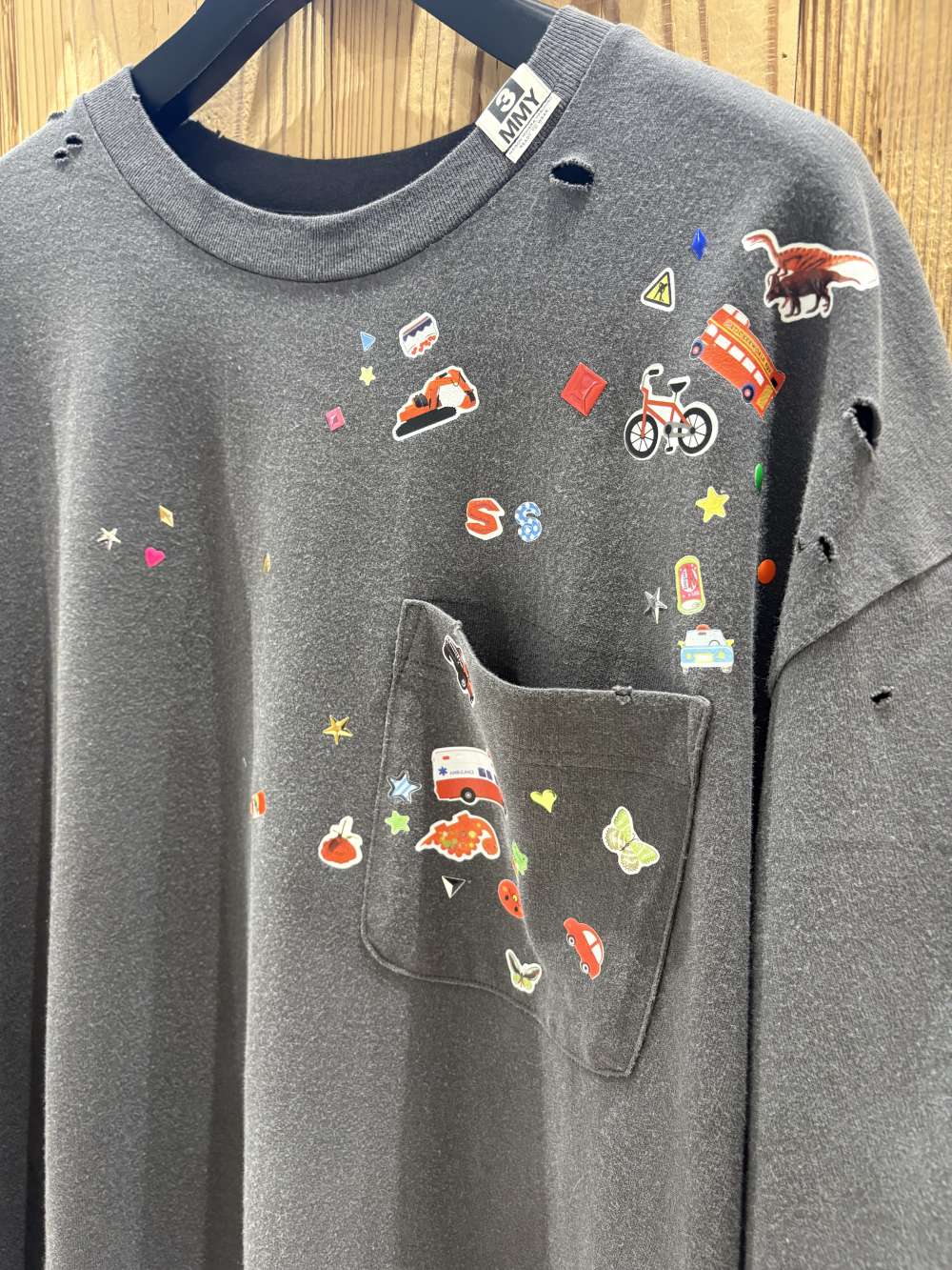 メゾンミハラヤスヒロの26SS新作Tシャツ! ディストレスド加工が施されたTシャツ。 ステッカーのプリントを全面に散りばめられたデザイン。 まるで着...