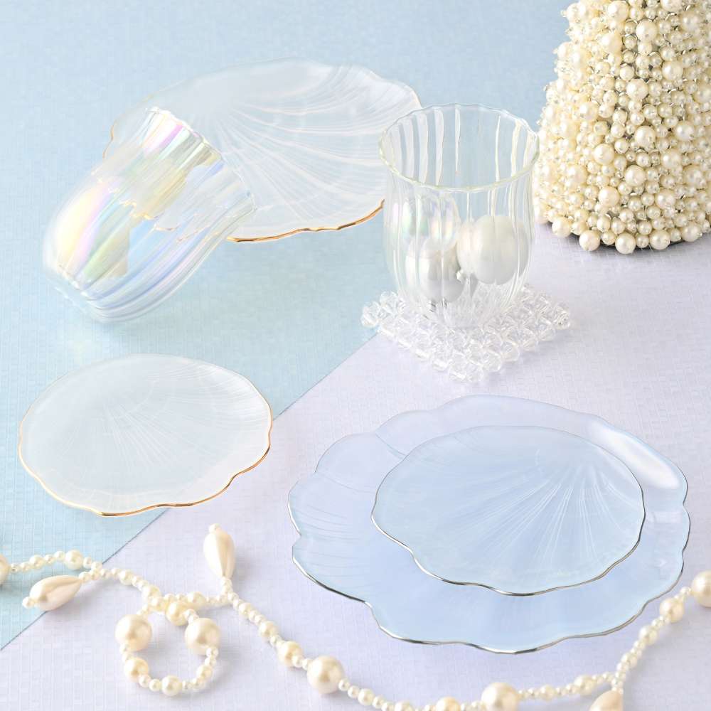 【NEW】シェルをモチーフにしたデザインが華やかなプレートです🐚🤍 ホリデーシーズンのご自宅でのパーティーシーンにぴったりな、ガラスのテーブルウェア...
