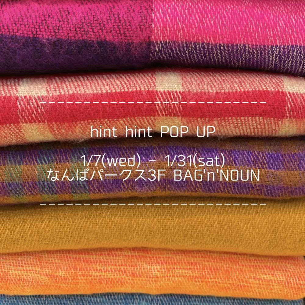 こんにちは。BAG'n'NOUNです。 hint hintのストールを展示、販売しております。 グルグルっと首に巻くのはもちろん、肌寒い日は肩にか...