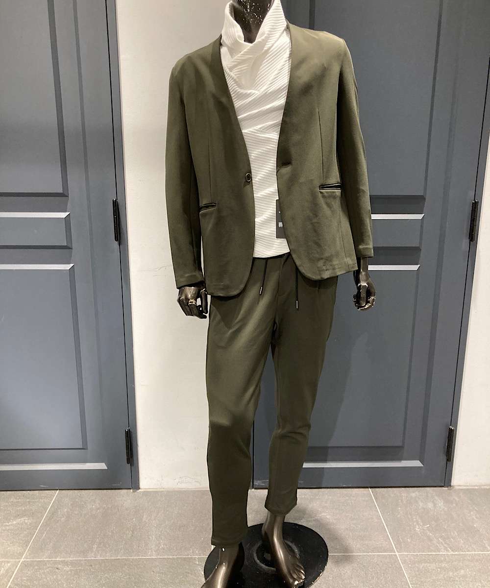 本日ご紹介アイテム TETE HOMME ストレッチナイロンノーカラー ジャケット お色 ブラック、ベージュ カーキー 素材 レーヨン67%ナイロン...