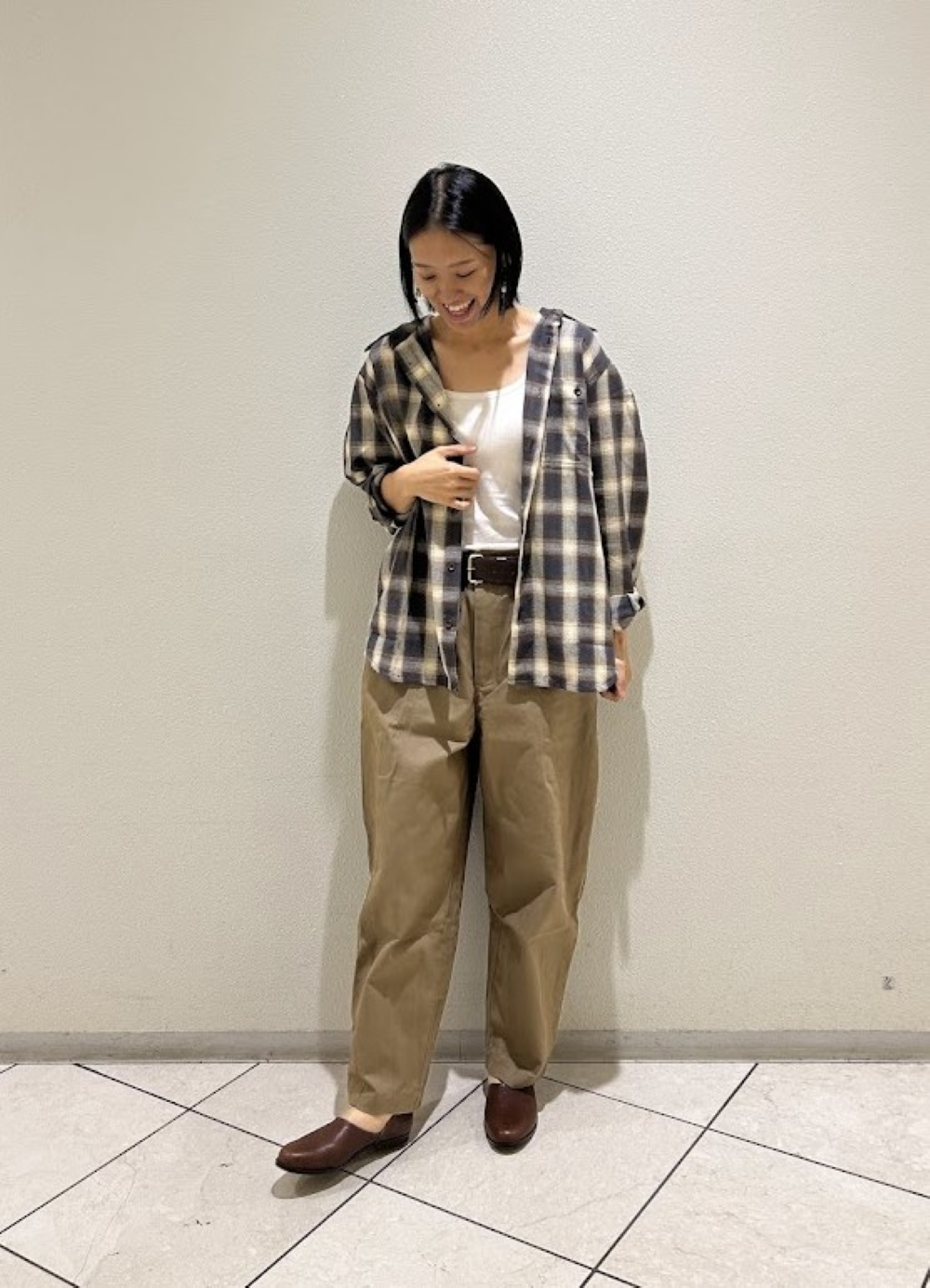身長165cmのスタッフが、上下ユニセックスの アイテムを使ってコーディネート! #EMOCオンブレチェックシャツ オンブレとは、フランス語で「陰...