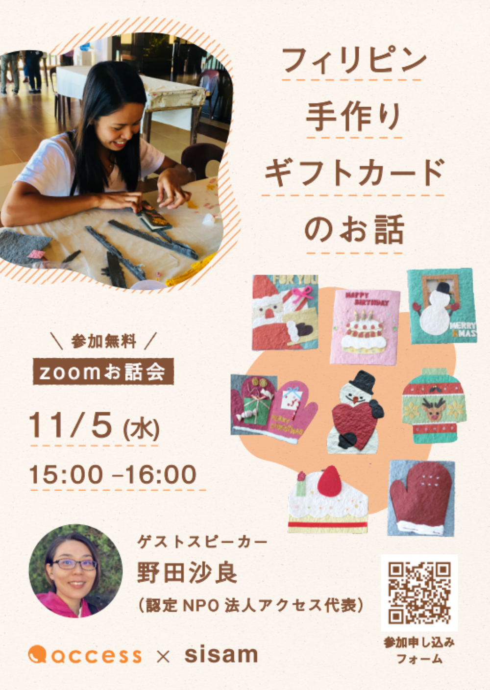 ◆特別公開|シサムの学校 国際協力NGO代表・野田沙良さんに聞く 「生産者と一緒に泣いて笑って作り続けた フィリピン手作りカードのお話会」 約20...