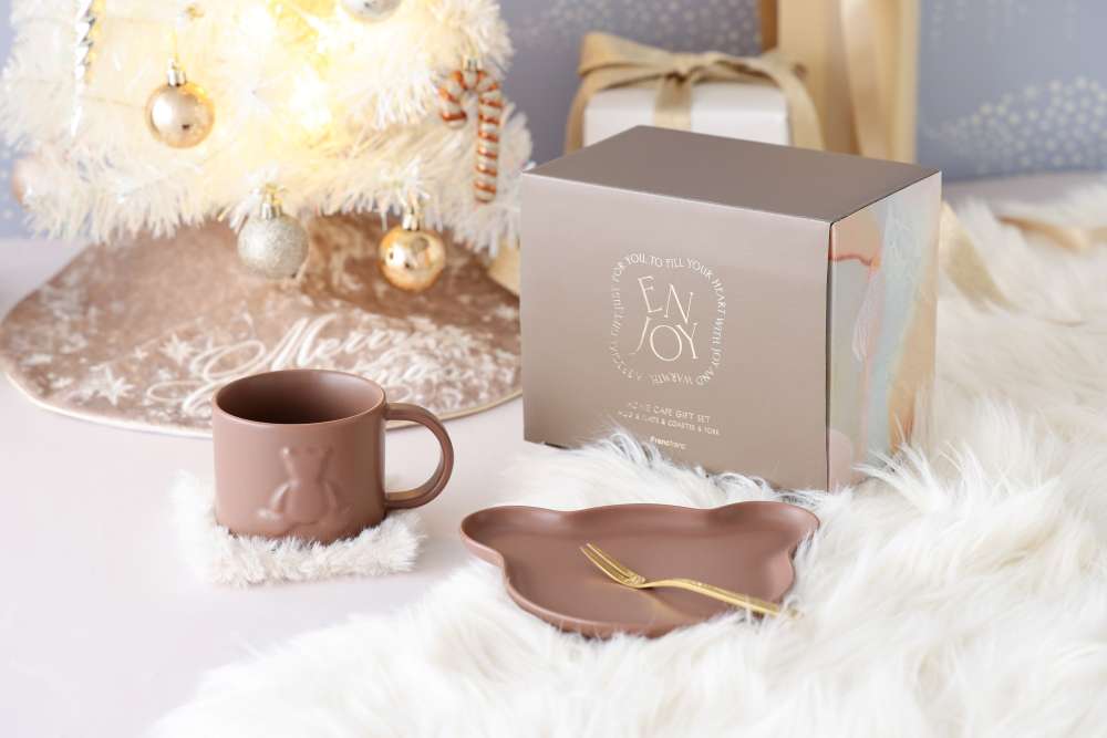 【NEW✨】くまのデザインがかわいい、カフェアイテムのギフトセットです🧸☕️ マグ、プレート、コースター、ケーキフォークがセットになった1人用のおう...