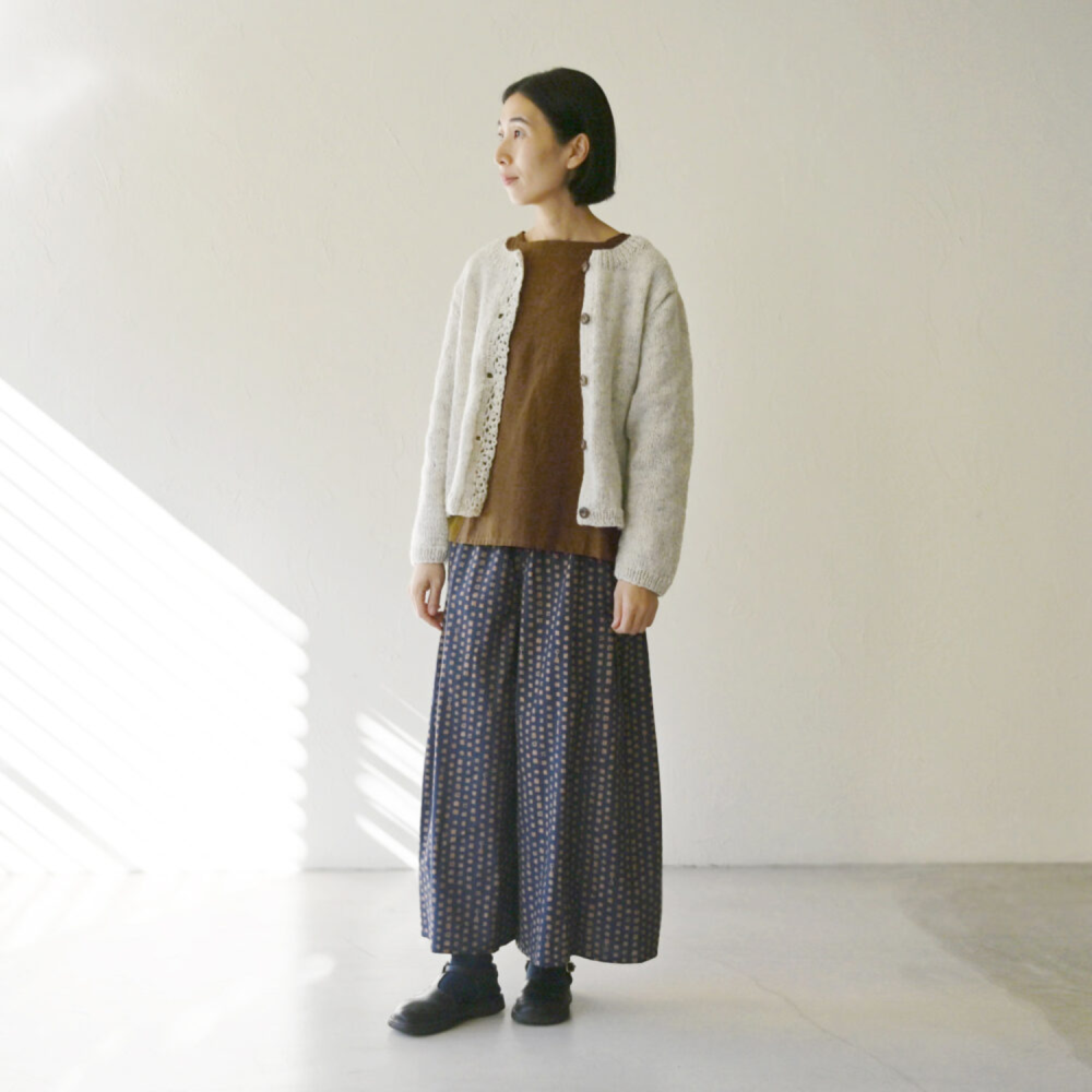 冬本番は、ウールの手編みニットを羽織ってぽかぽか温かく♨️