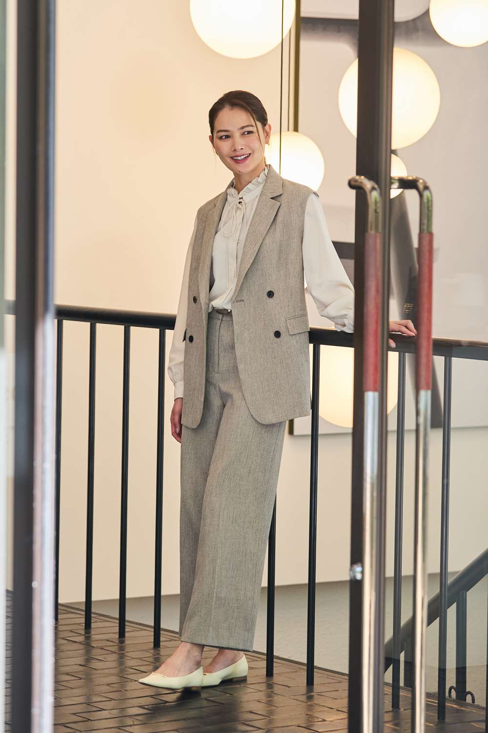 ジレがもたらす洗練されたきちんと感が両立できます。