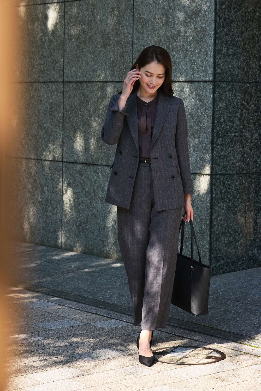 ミディアムグレーのダブルジャケットと