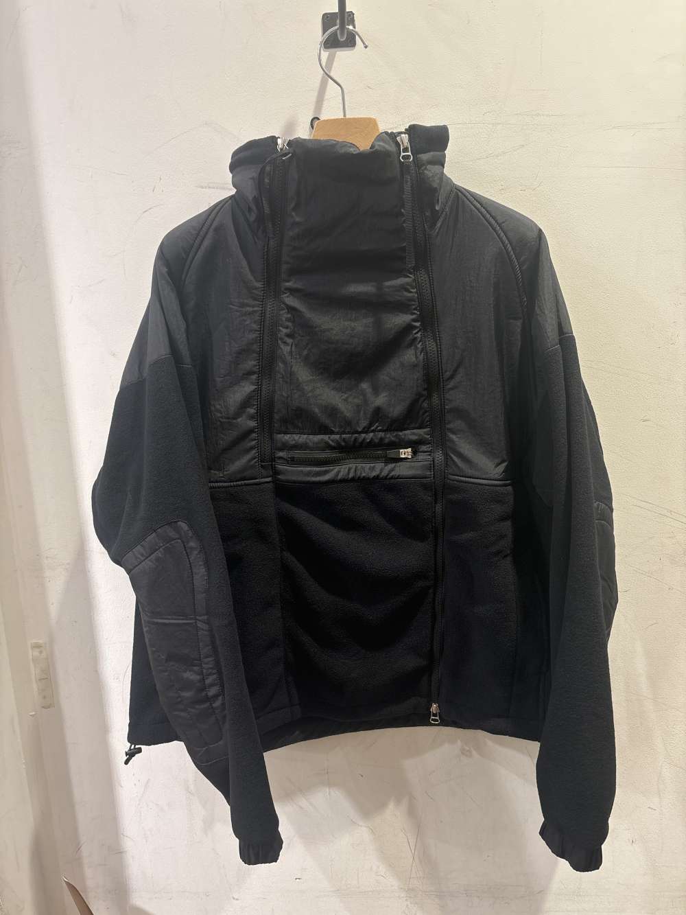 両面起毛の肌触りの良いフリースとシワ加工を施したナイロンタフタの切り替えがアクセントになっています。