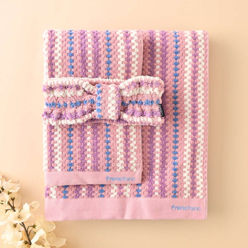 フェイスタオル、バスタオル、ヘアバンドの3種類をラインアップしているので、デザインを揃えてバス周りのコーディネートを楽しめます🛀🫧