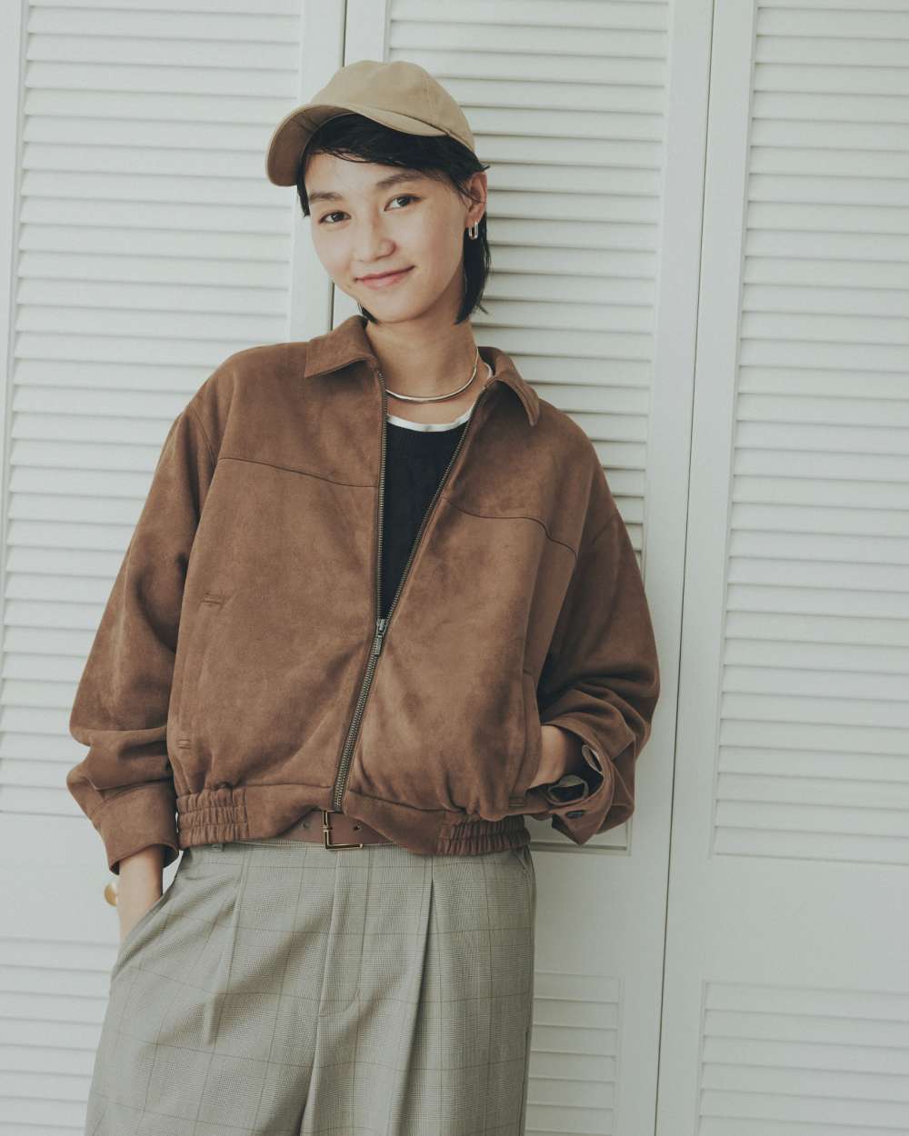 トレンドライクな着こなしに仕上がるステンカラーのブルゾン。