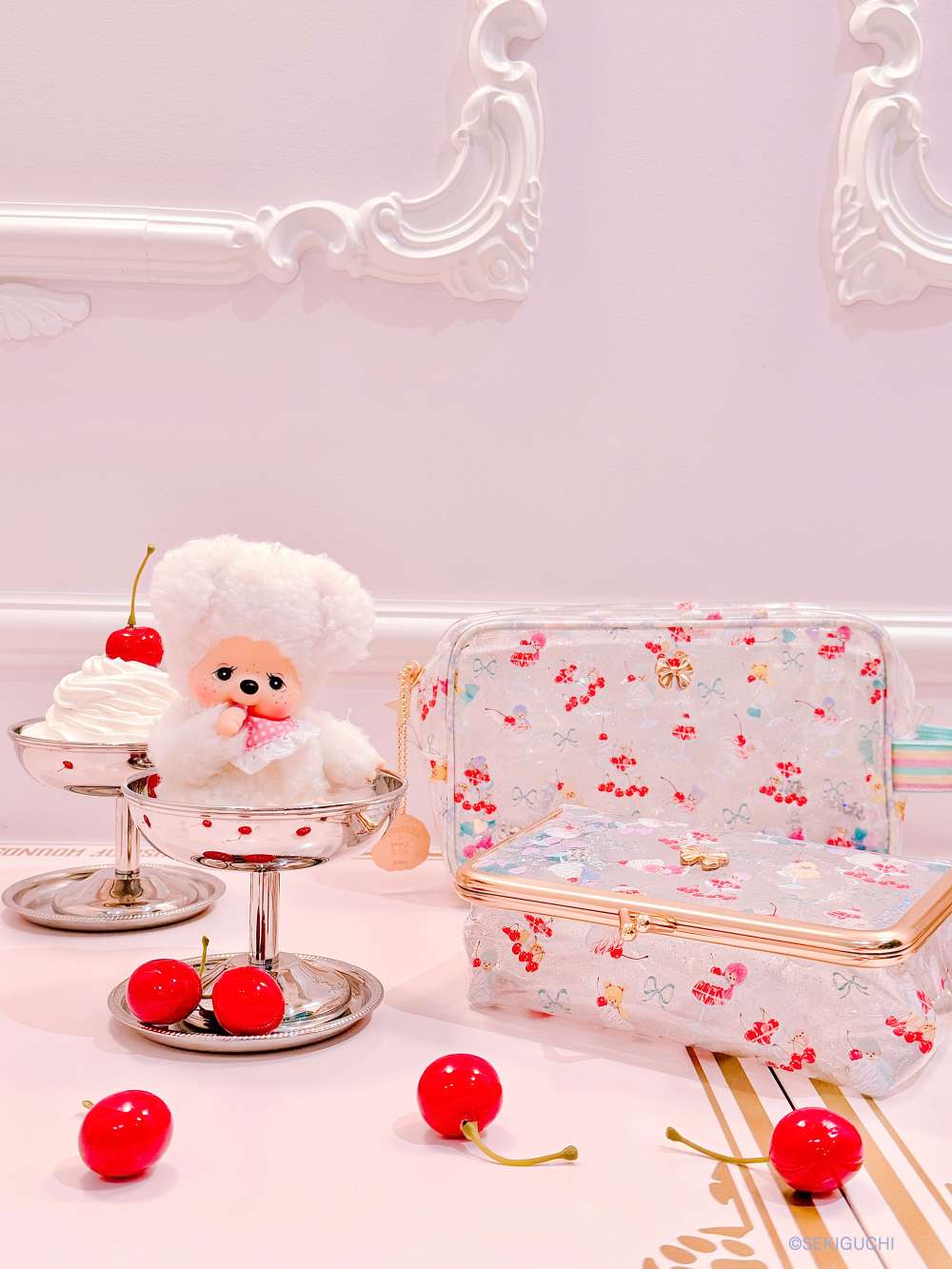デザート柄の中で遊んでいるようなモンチッチの姿がとってもかわいい♪
