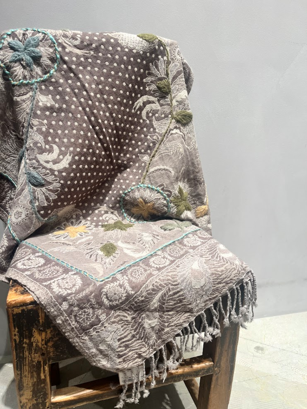手刺繍や織りの生地にときめく、1点ものウールショール。