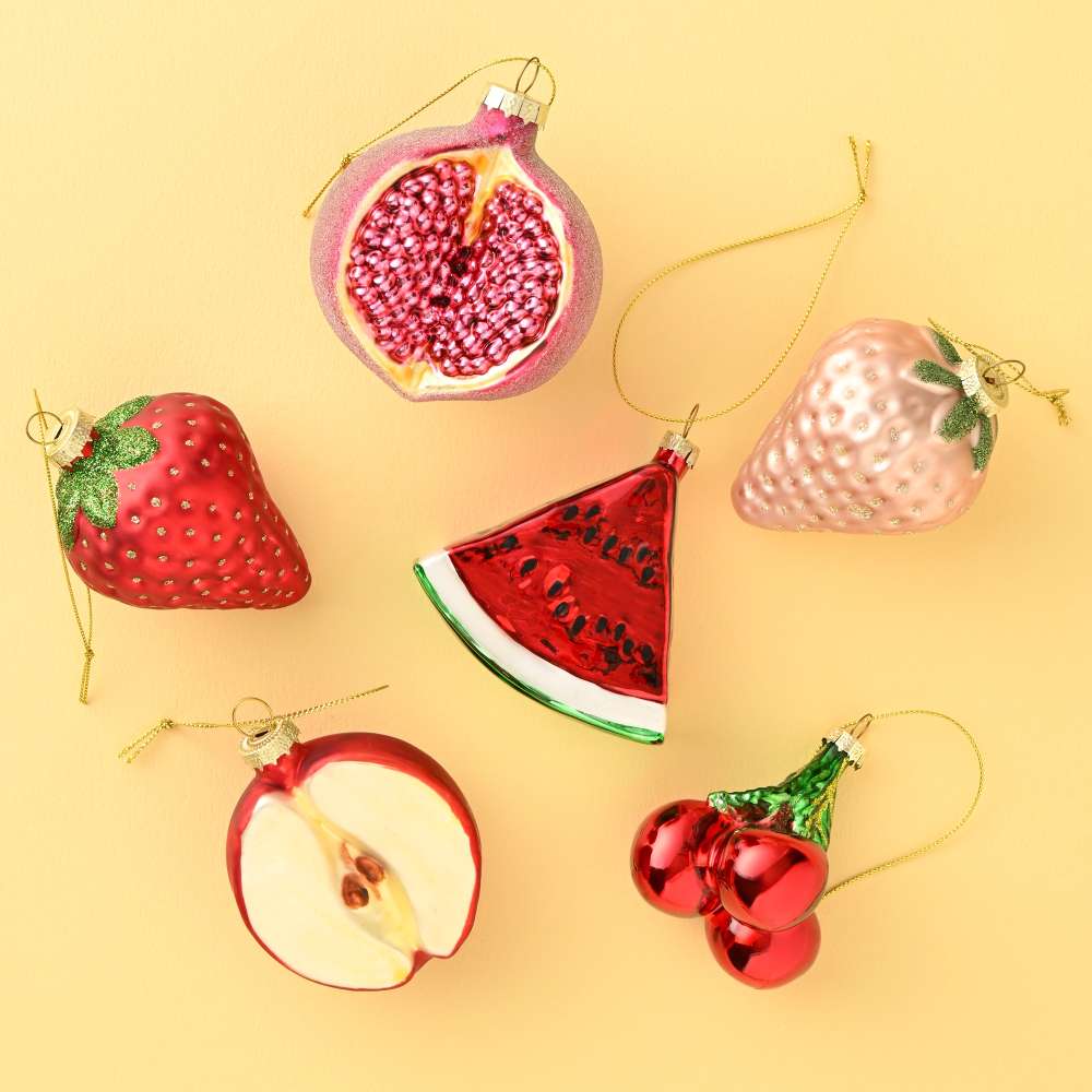 フルーツをモチーフにしたオーナメントは、シリーズで組み合わせてコーディネートすると、可愛くまとまります🍓🍒