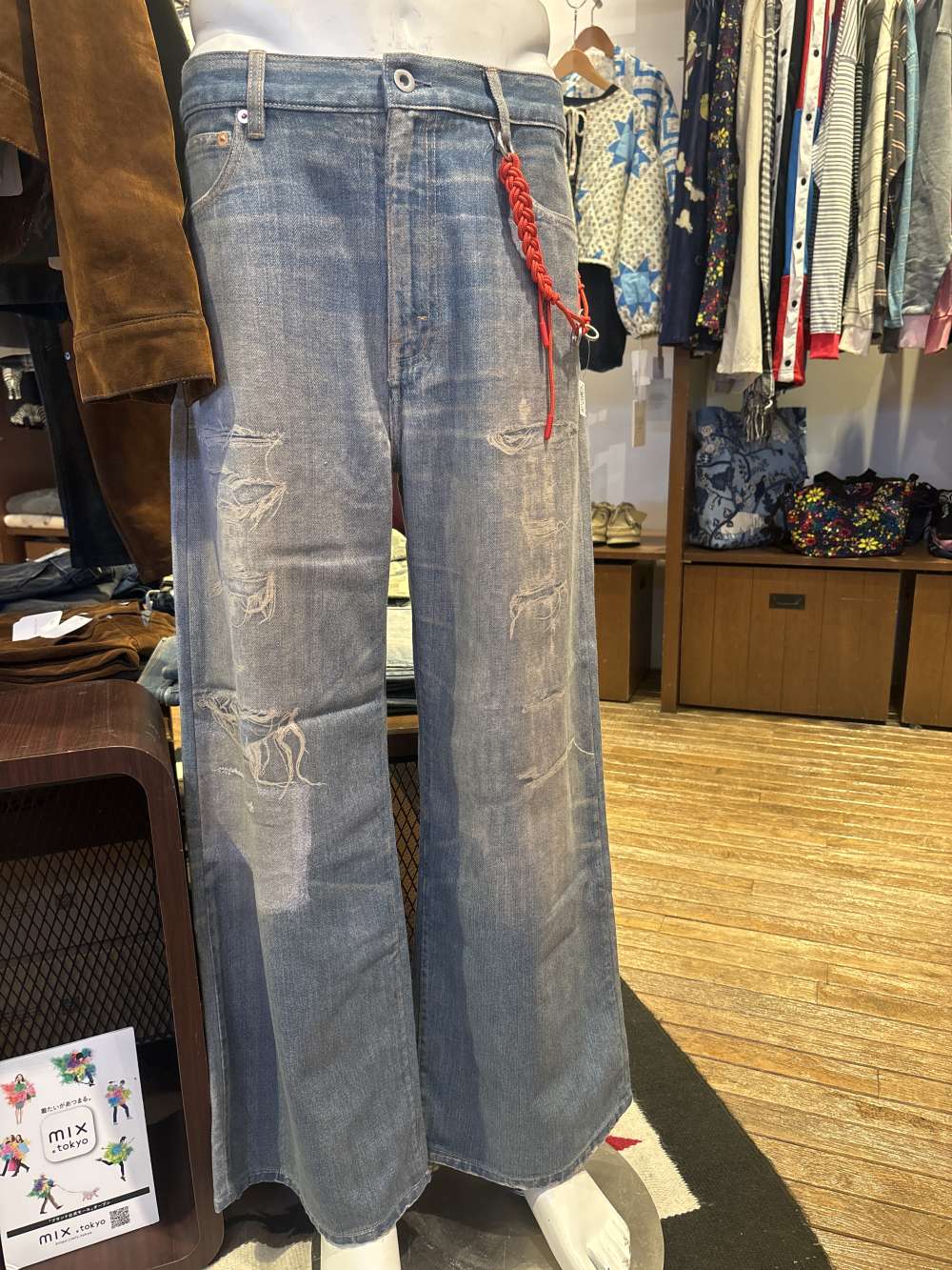 着古したユーズドのようなデニムの雰囲気を転写プリントで表現したデニムパンツ。