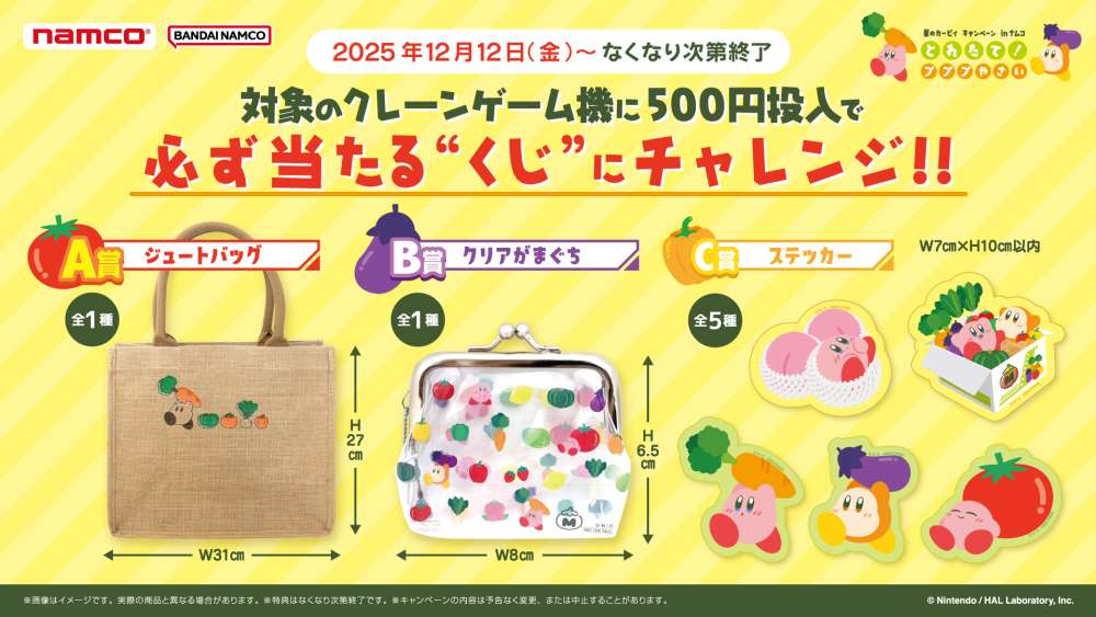 12月12日(金)より、『星のカービィキャンペーン in ナムコ とれたて!プププやさい』を開催!