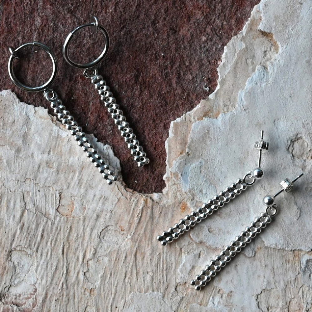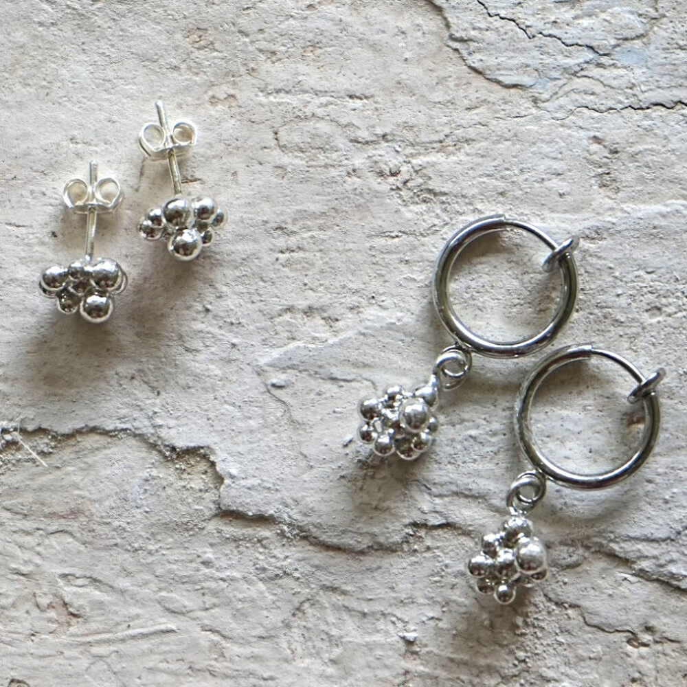 シルバーの小さな粒を無造作にぎゅっと集めたような、美しいモチーフ。