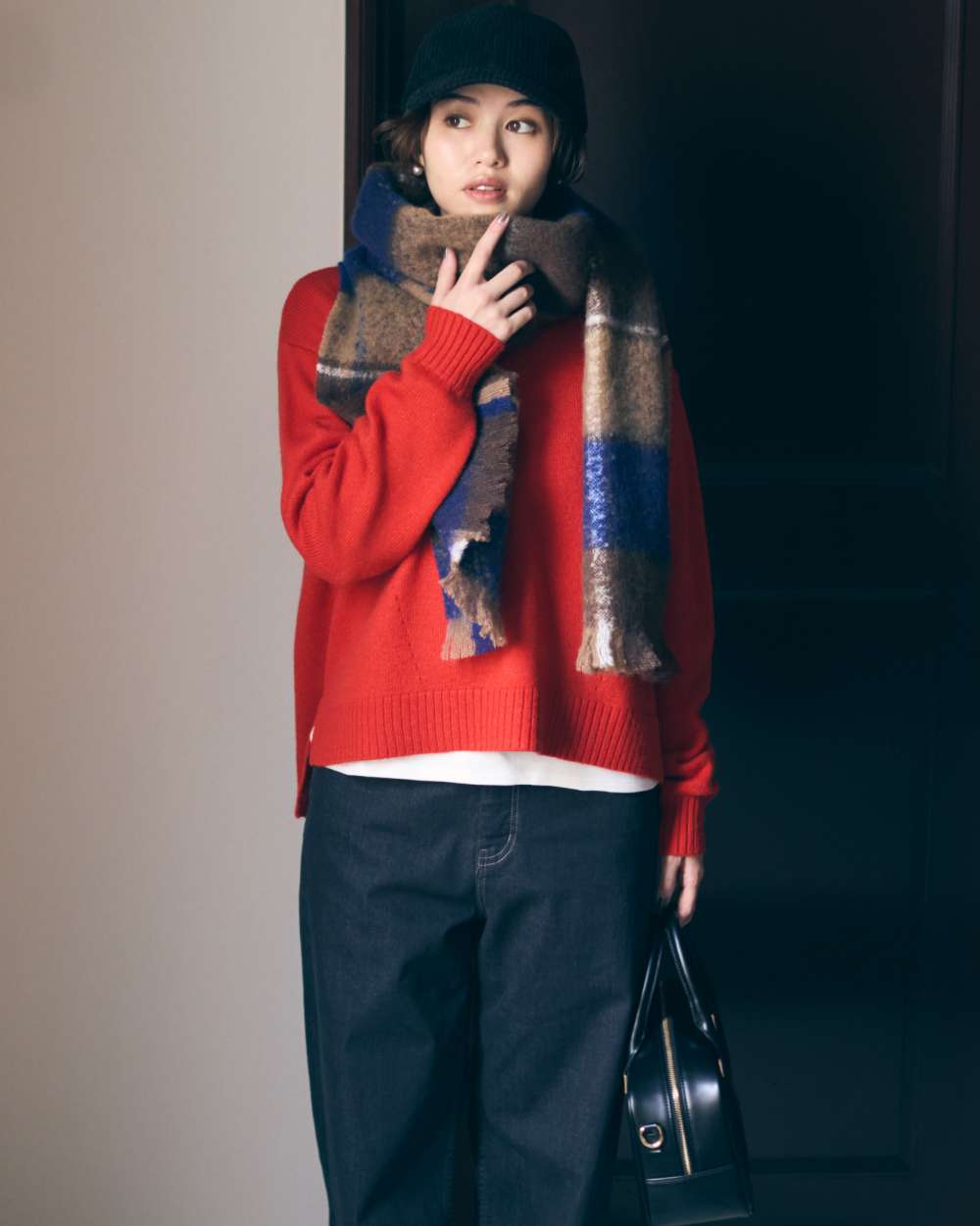 コンパクトな着丈がどんなボトムとも相性の良いニットです。