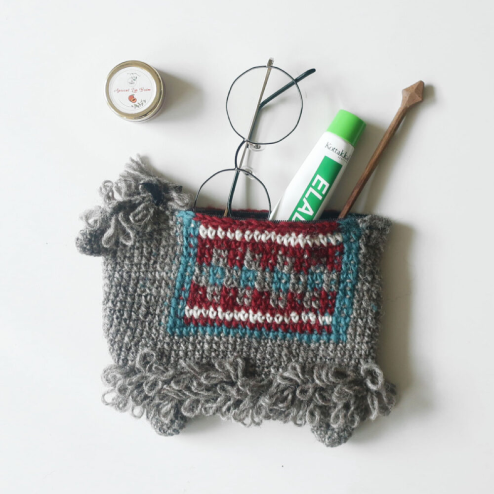 現地ヒマラヤ山脈に生息する「ヤク」をモチーフにしたポーチ。
