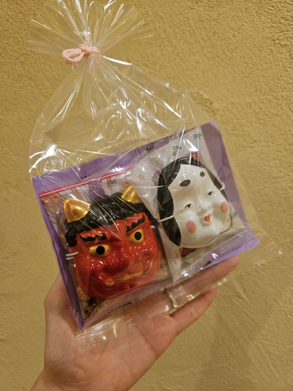 赤鬼とお多福のミニお面がセットになった福豆です🌟