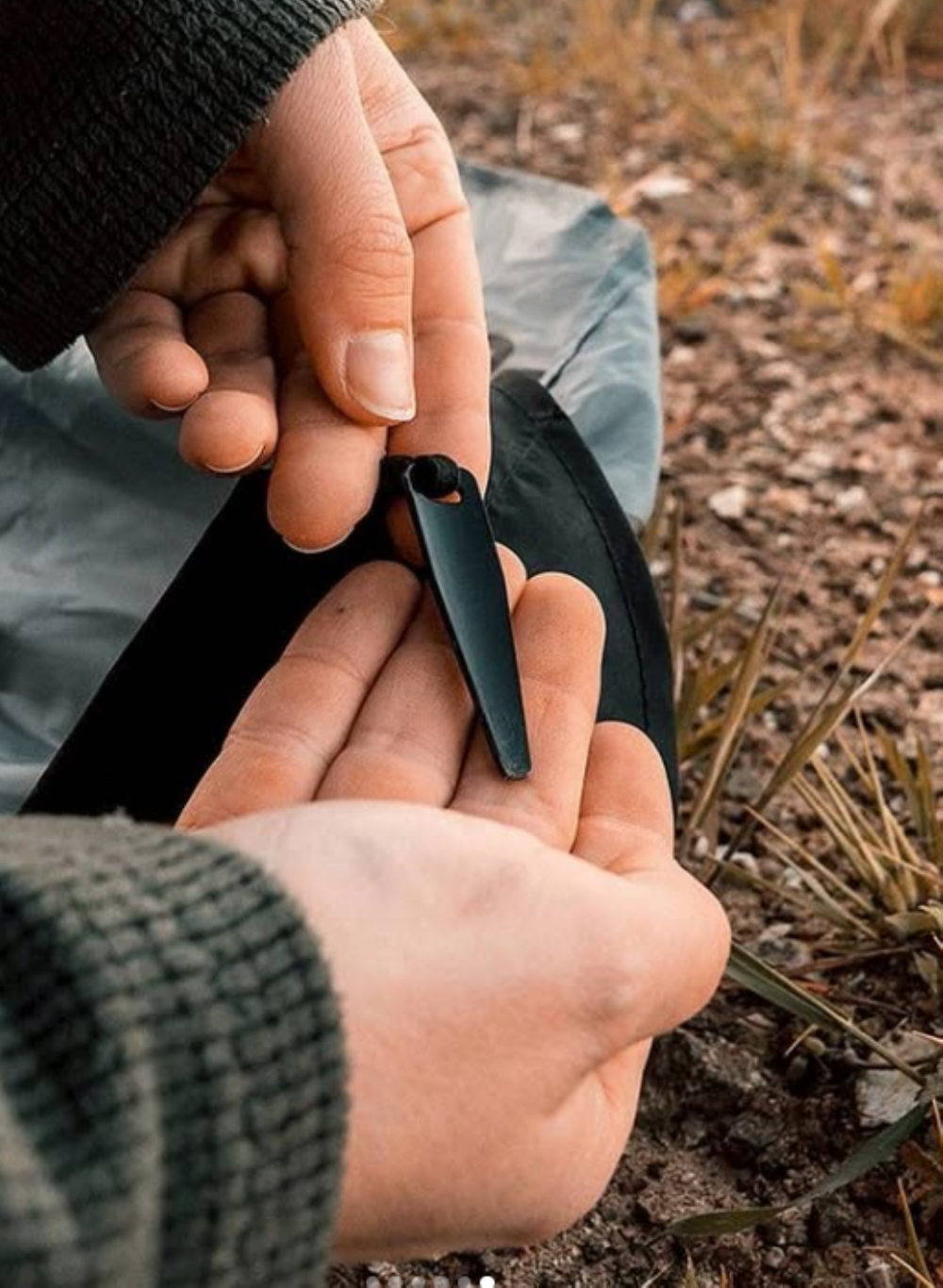 付属の収納ケースに特許取得のEasy-Packパターンに沿って折りたたんで簡単に収納でき、キーリングやカラビナを使用して、バックパックやキーチェーンの外側に取り付けることもでき邪魔にならずどこにでも持ち運びができるようになっています👍