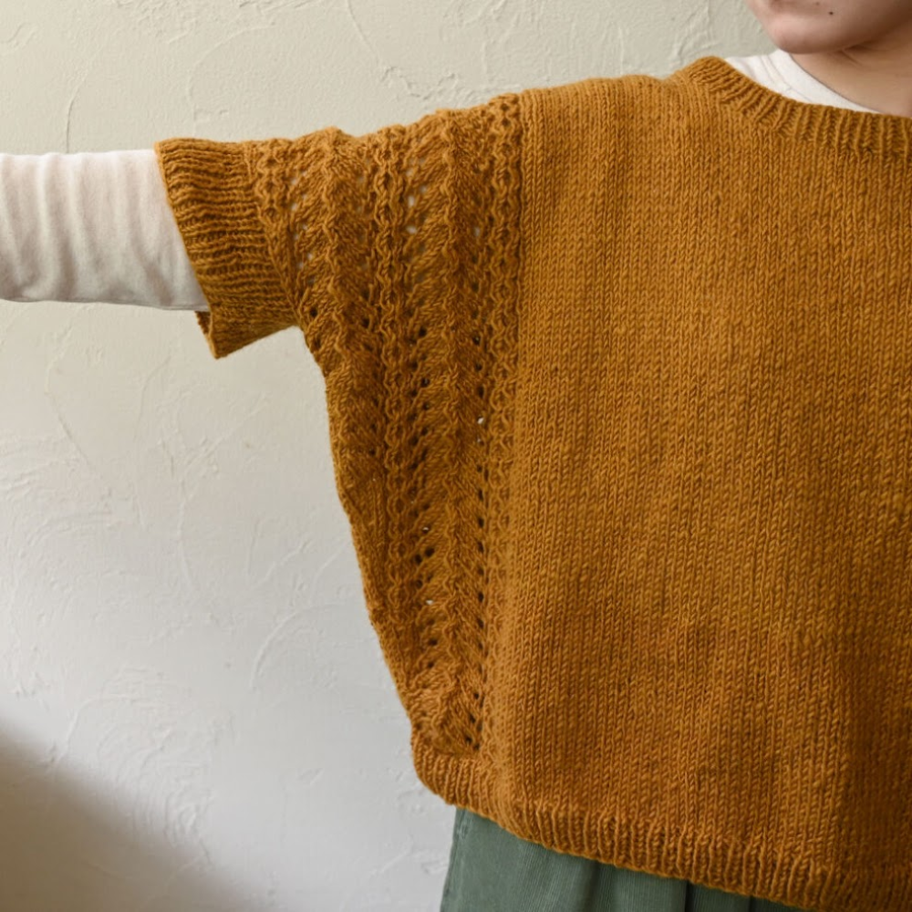 なんと言っても1番のポイントは、脇や腕回りに贅沢に入った透かし編み!
