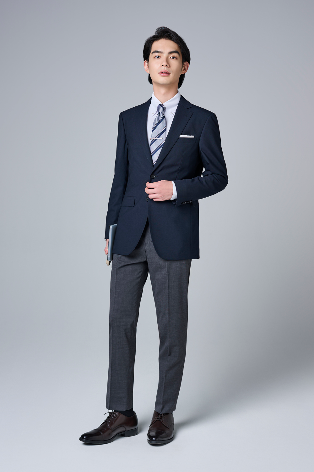 ネイビージャケット✖グレーパンツがおすすめ!