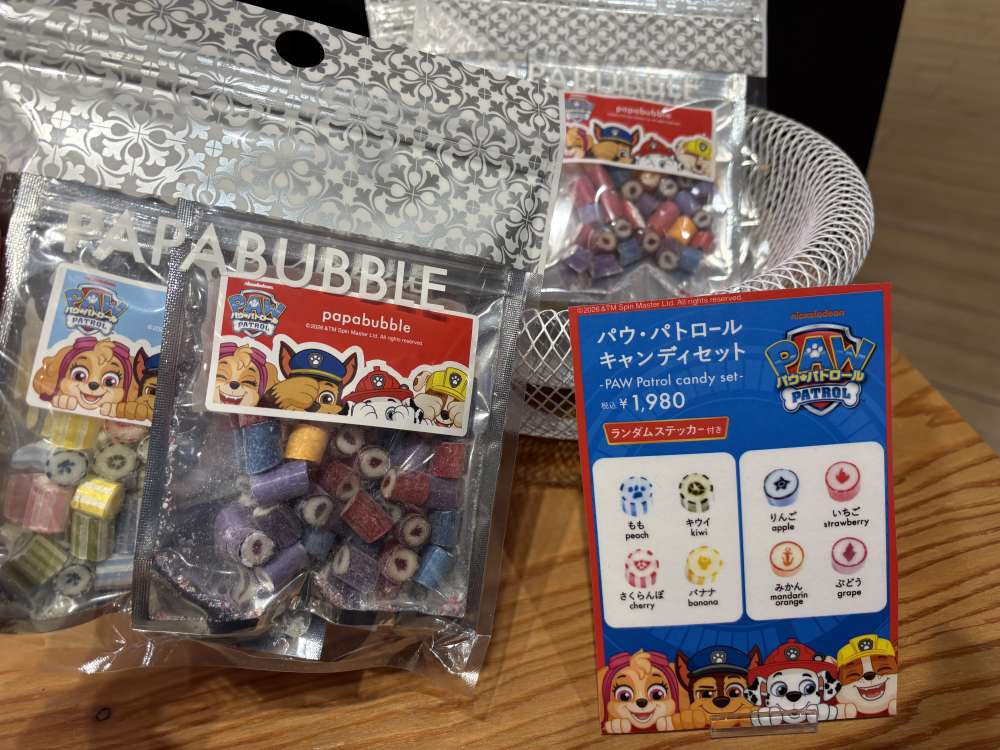 キャンディには「パウ・パトロール」お馴染みの登場キャラクターのチェイス、マーシャル、ラブル他、8キャラクターをパパブブレの職人がパウっと表現。お子様でも安心して召し上がっていただける天然着色料を使用し人気のフレーバーを集めました。