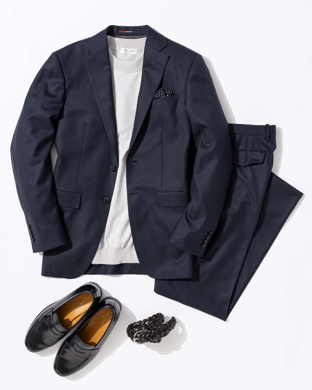 大活躍間違いなしのネイビースーツ。