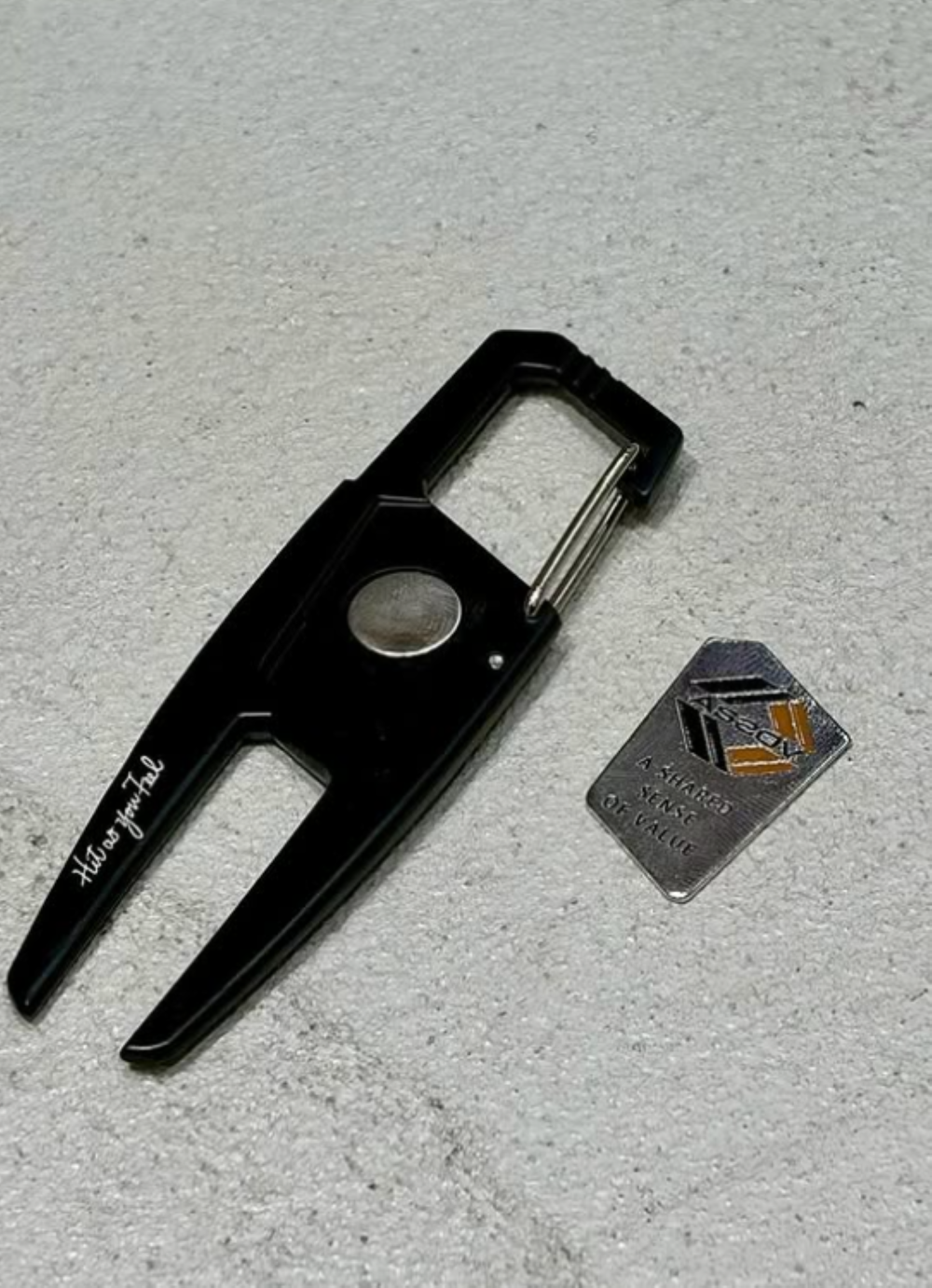 カラビナで腰回りにつけ、グリーンのへこみをなおす際にさっと取り出せます⛳️