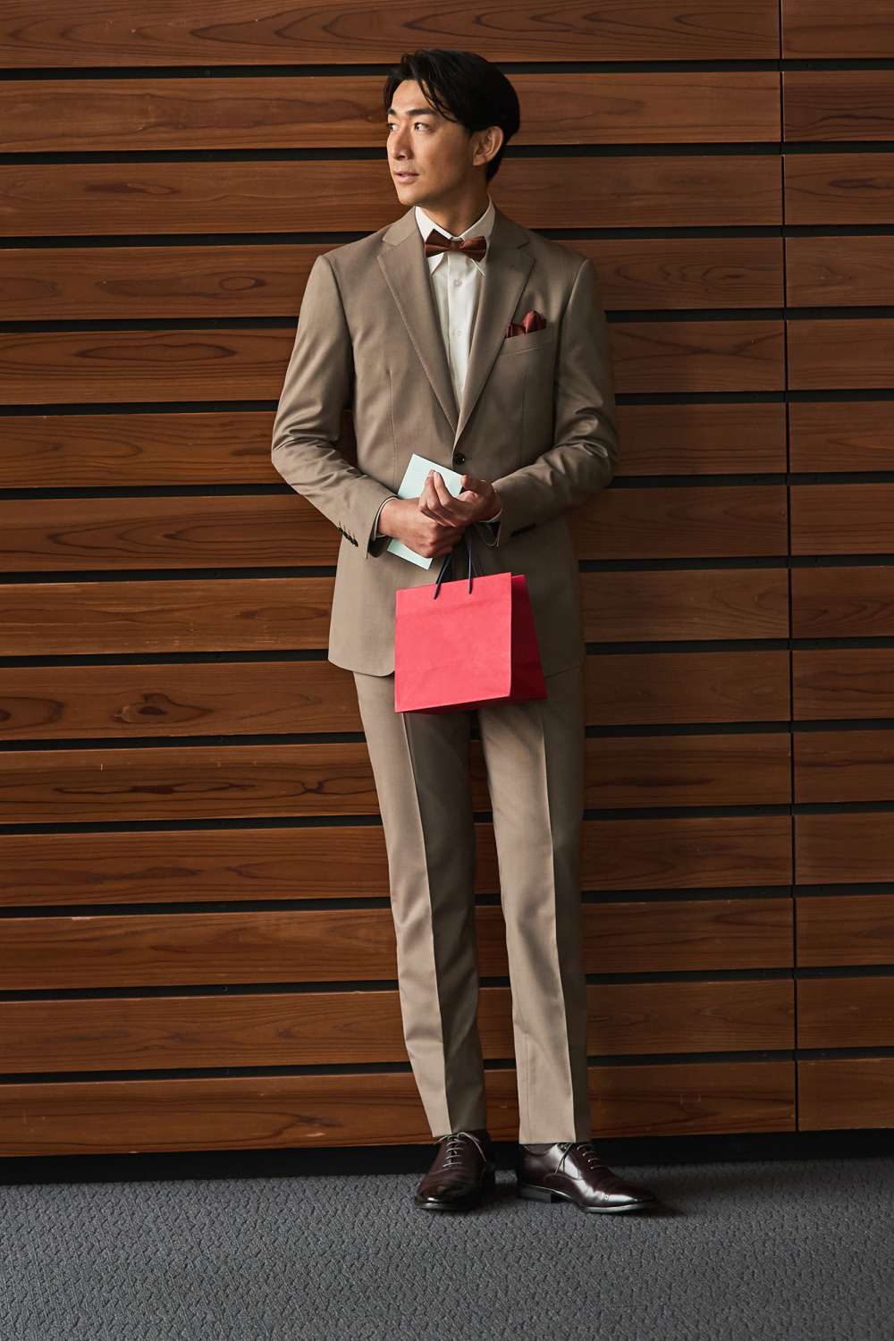 オシャレなベージュスーツは
