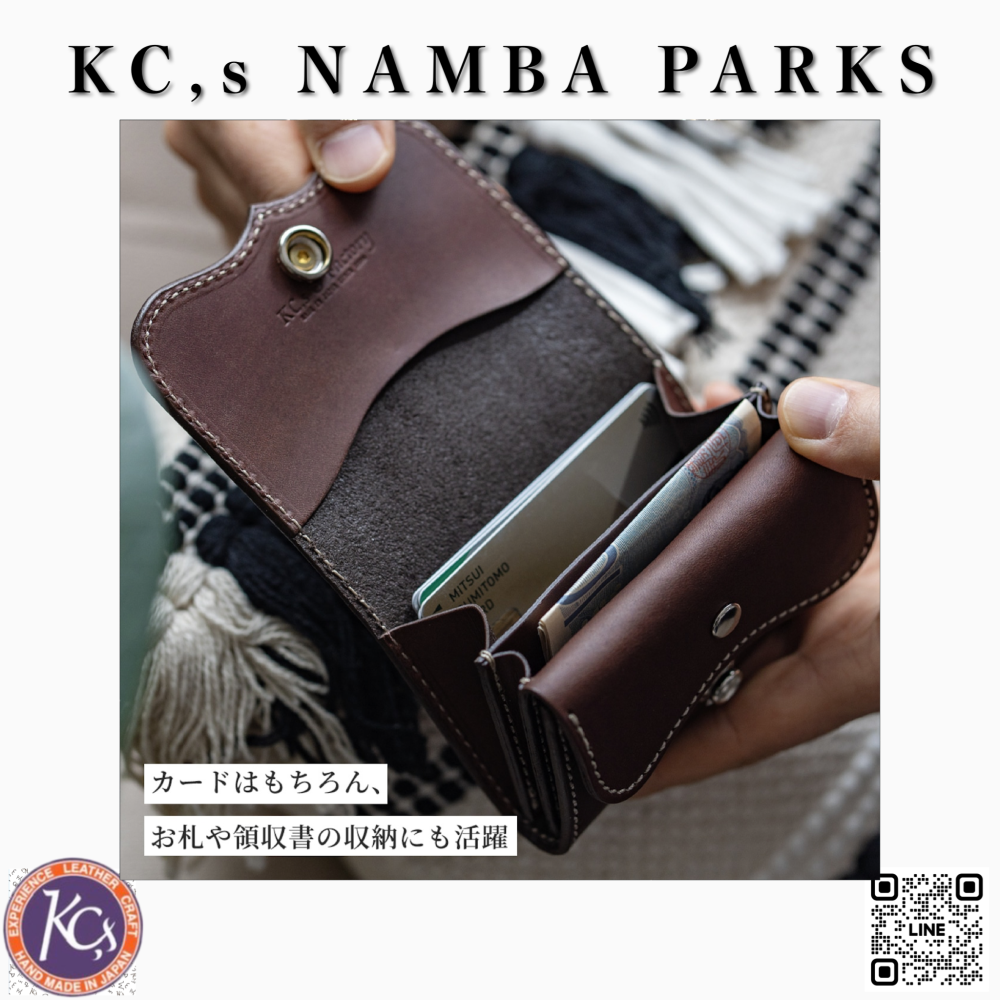 カードのほか、仕切り手前にはスナップボタンでフラップを付けているので、小銭入れとしてお使いいただけます。