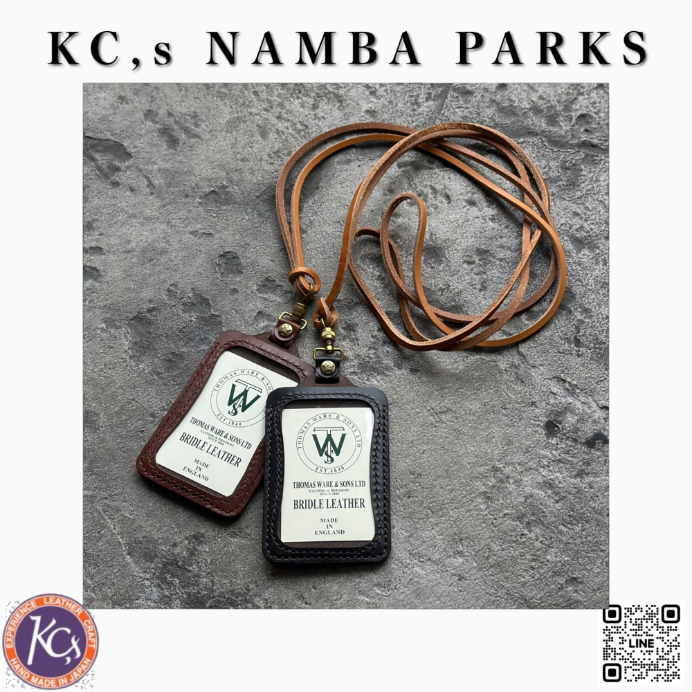 ネックストラップ付きのネームホルダーを、英國女王賞を受賞したトーマスウェア&サンズ社のブライドルレザーを使い製作しました。