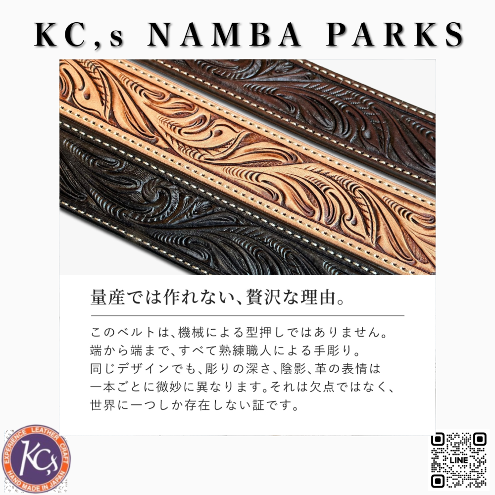 38ミリ幅のオールクラフトベルトが、満を持して登場しました。これまでクラフト&バスケットのみで展開されてきた中、本作は全面にクラフトカービングを施した特別なモデル。ベルトの端から端まで余すことなく描き込まれたデザインは、ひと目でその価値を感じさせる迫力と完成度を誇ります。日常使いはもちろん、スタイリングの主役となる存在感ある一本です。