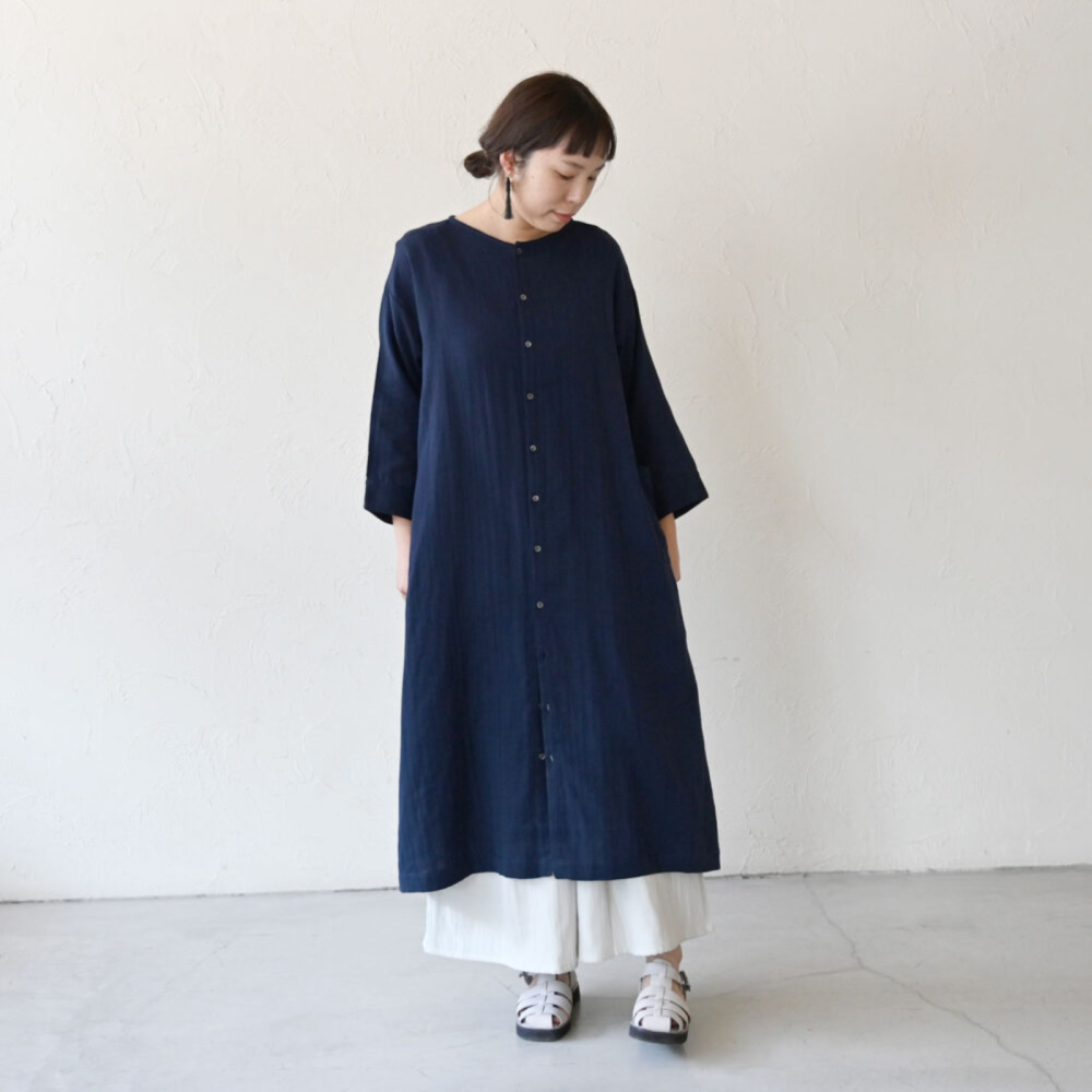 柔らかく広がるAラインが、リラックス感ただよう重ね着を完成させます。