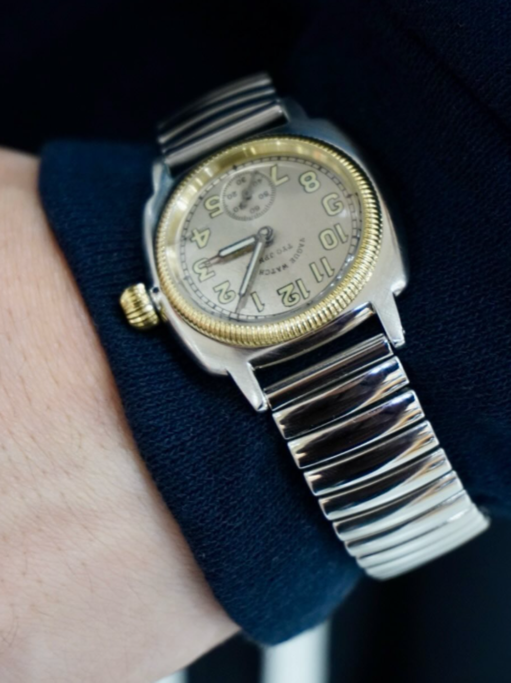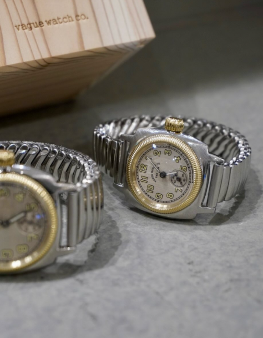 VAGUE WATCH Co.の初代モデル「COUSSIN Early」のアップデートモデルに伸縮自在なエクステンションベルトを合わせた今モデル。