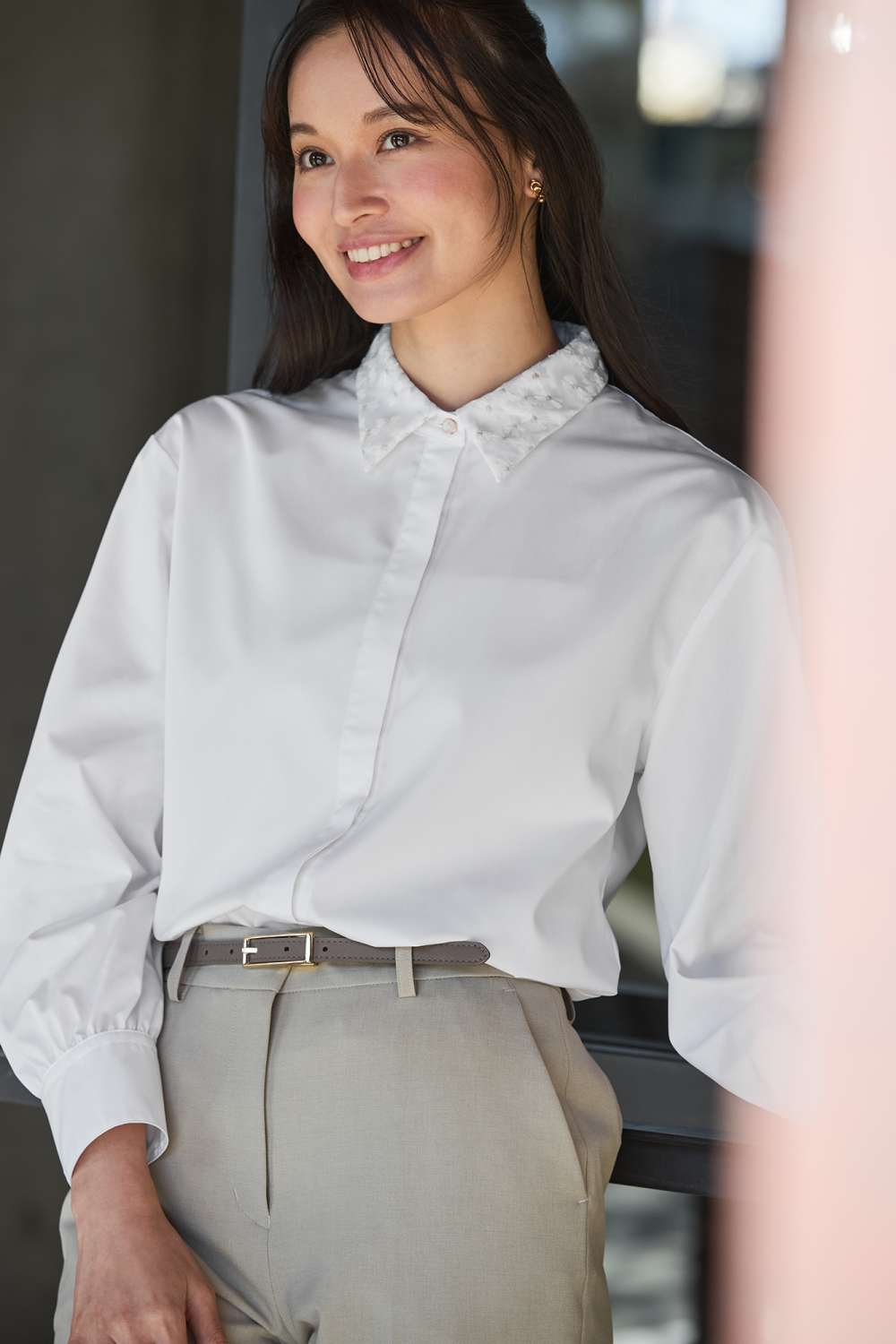【CLASSY.オンライン掲載】衿刺繍シャツ