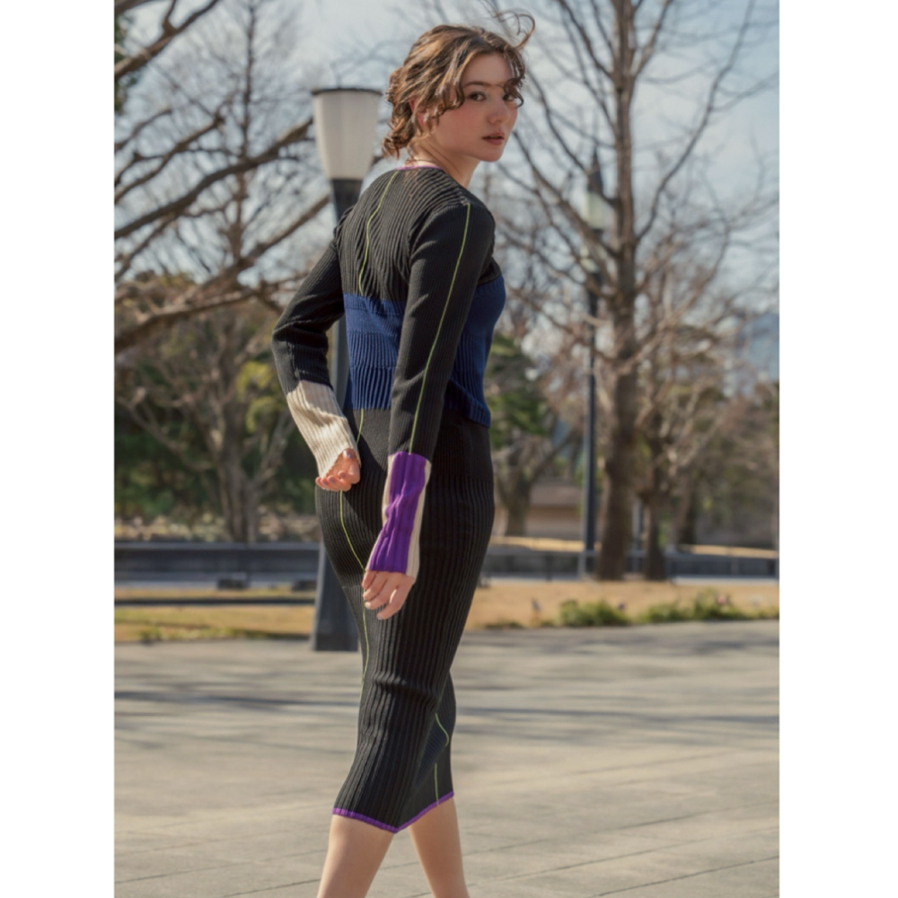 軽やかな薄手リブ素材を使用したニットワンピース。