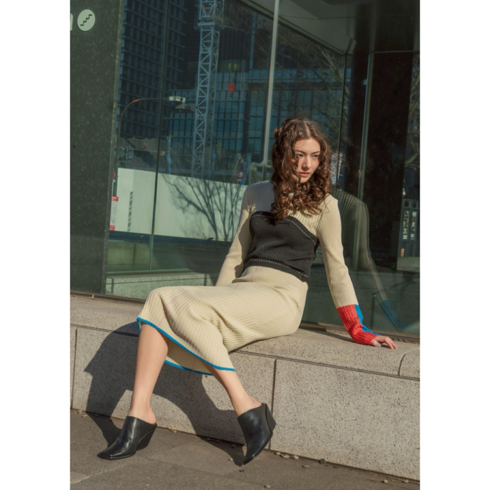 身体に程よくフィットするIラインシルエットで、女性らしさとモード感を両立。