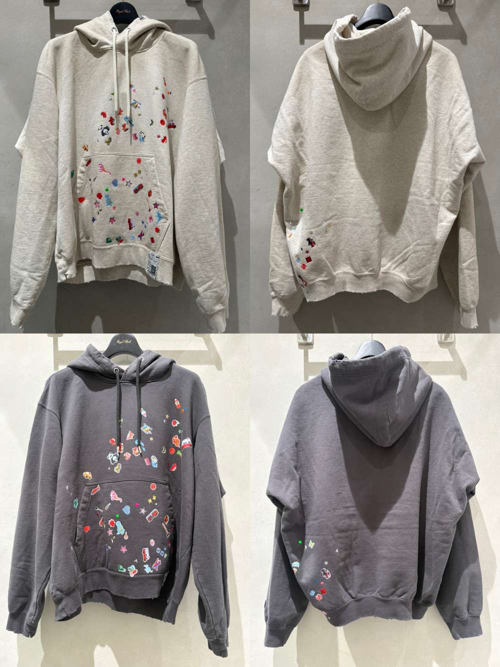 ディストレスド加工が施されたフーディー。