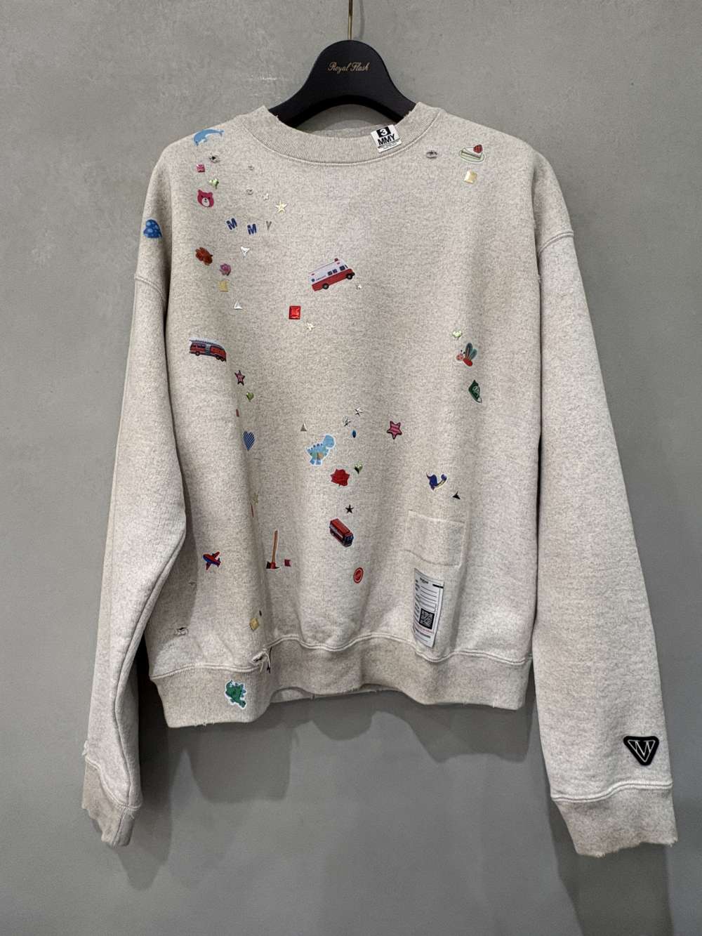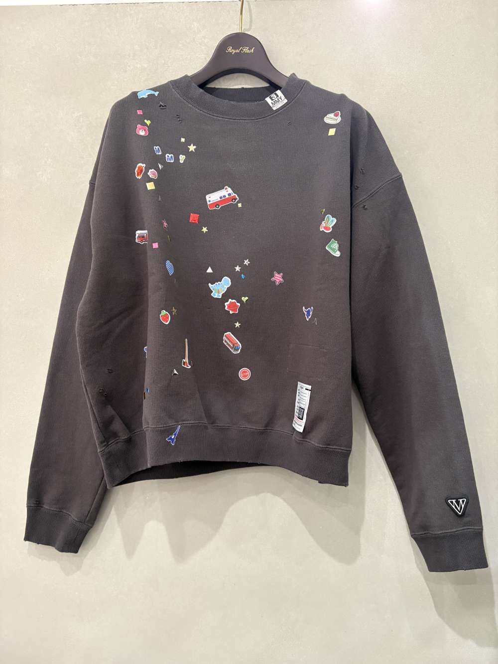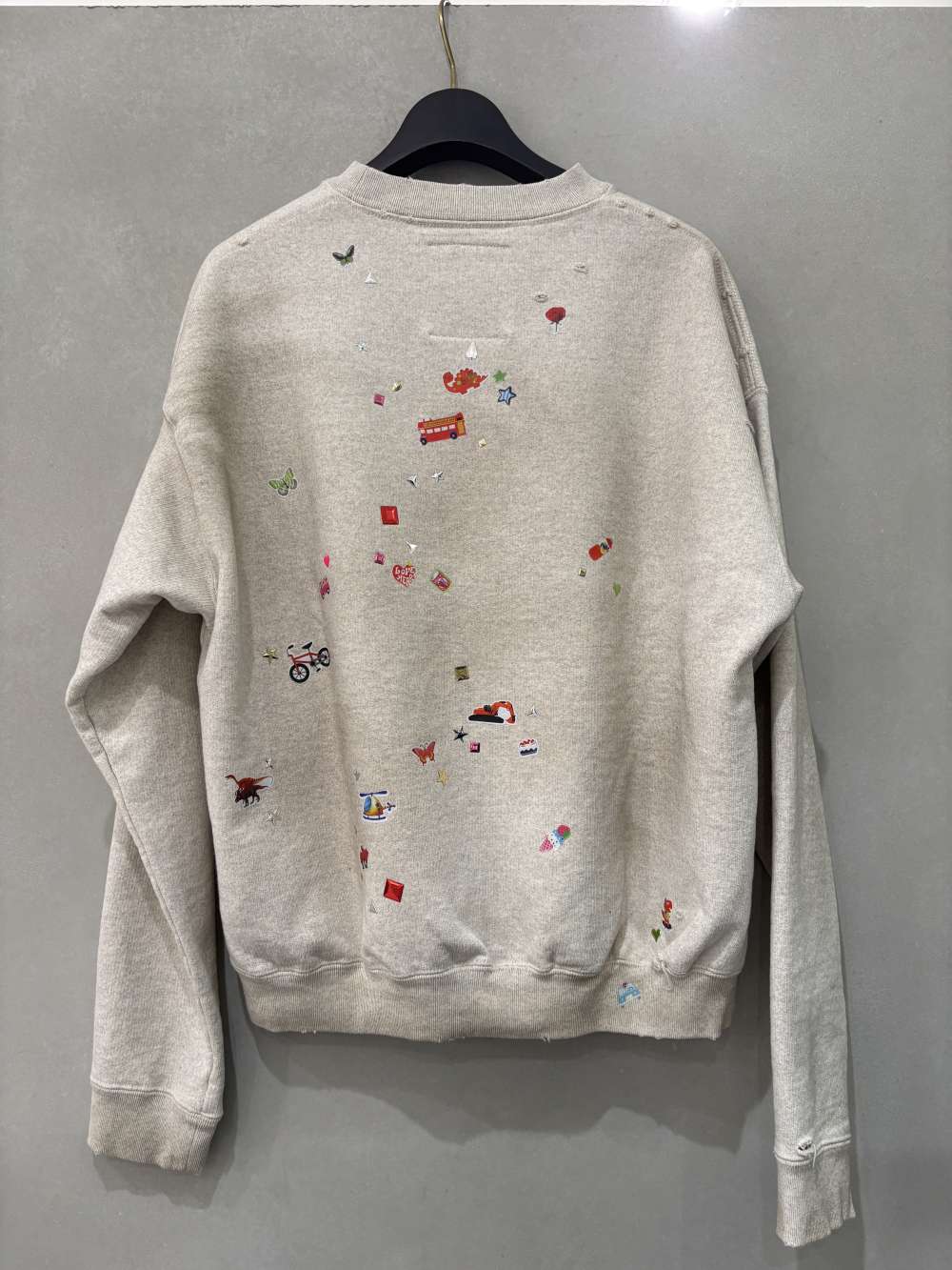 ディストレスド加工が施されたスウェットシャツ。