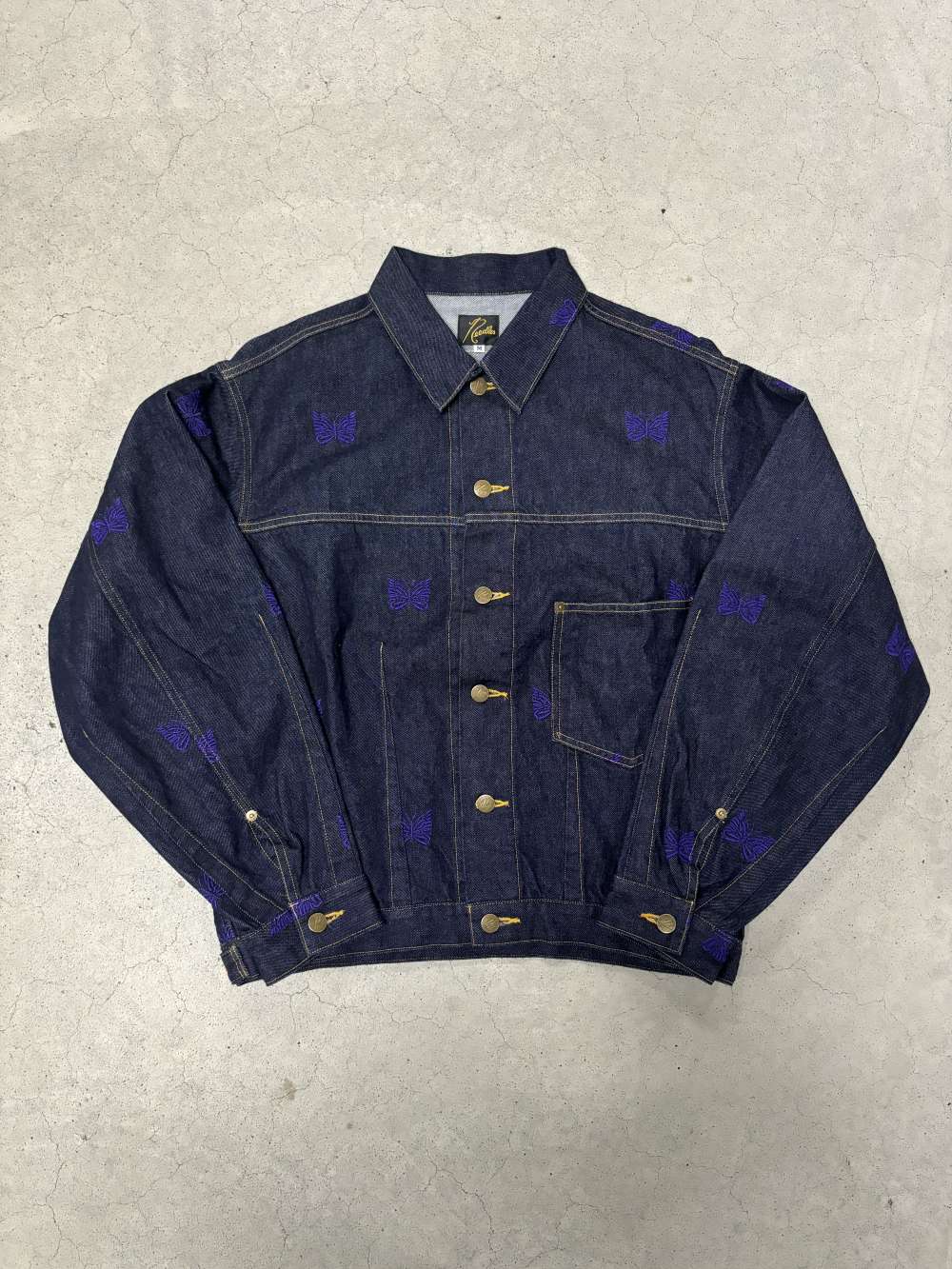 ワンウォッシュデニムにNeedlesを象徴するパピヨンの刺繍を全体に施した別注モデルとなっています。
