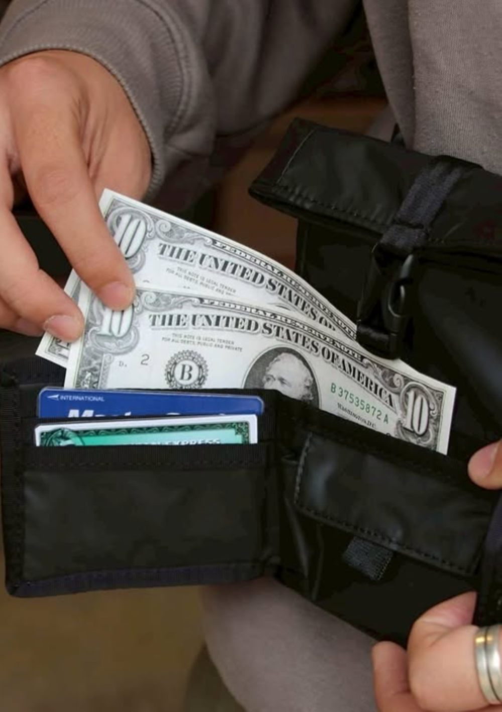 すごくコンパクトですが前面がお財布になっておりメインポケットにはスマホやおタバコも入れていただけ、