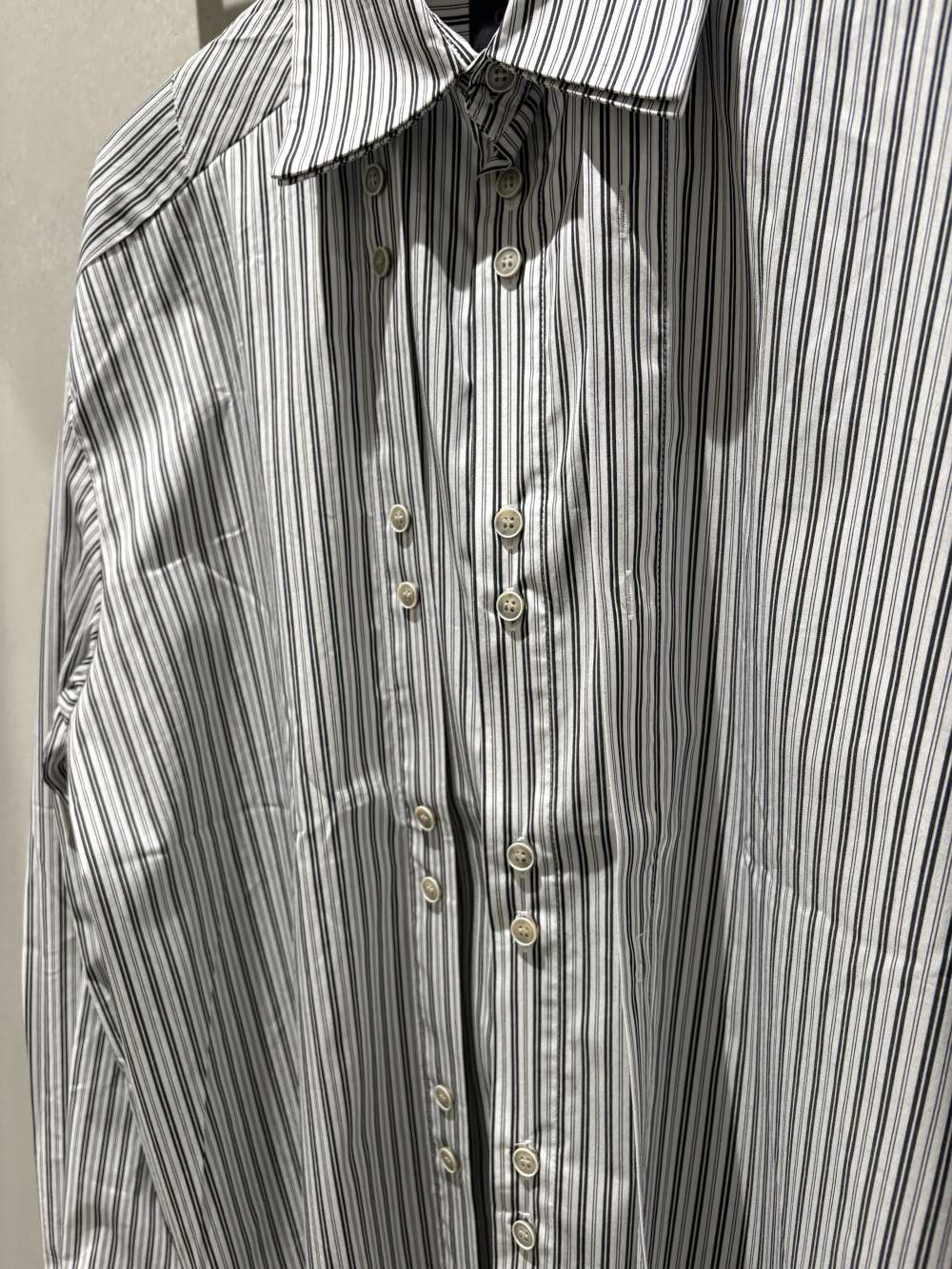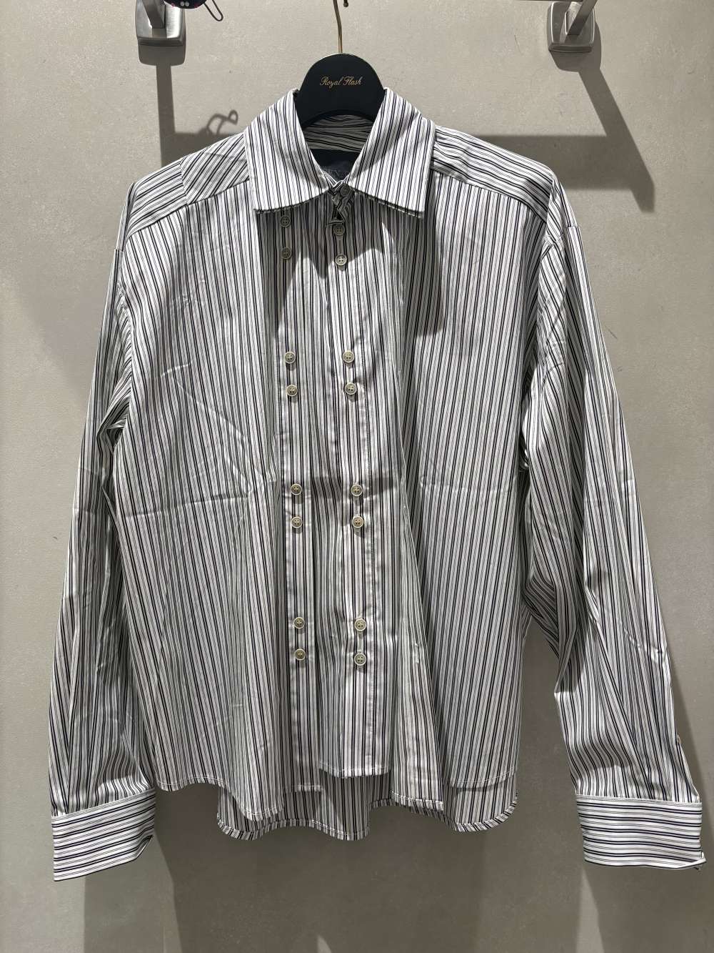 重ねている方のシャツもボタンホールがあるので一応留めれます。